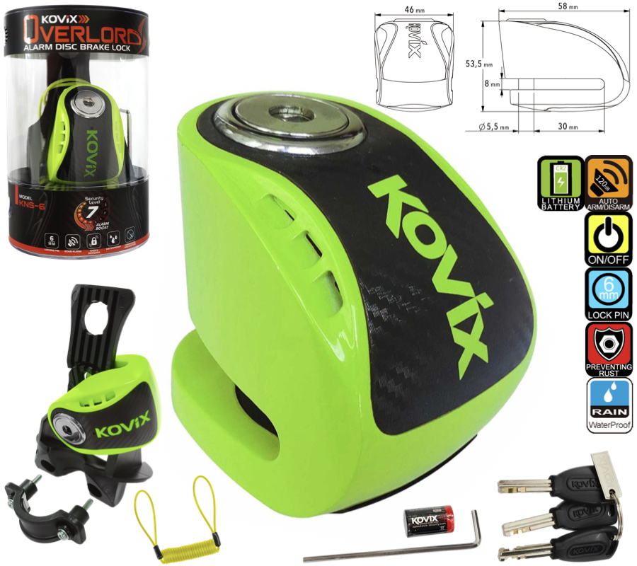 Zasady bezpieczeńśtwa i użytkowania: Blokada tarczy hamulcowej z alarmem KOVIX KNS6fluo zielony kod ean 4897049902947