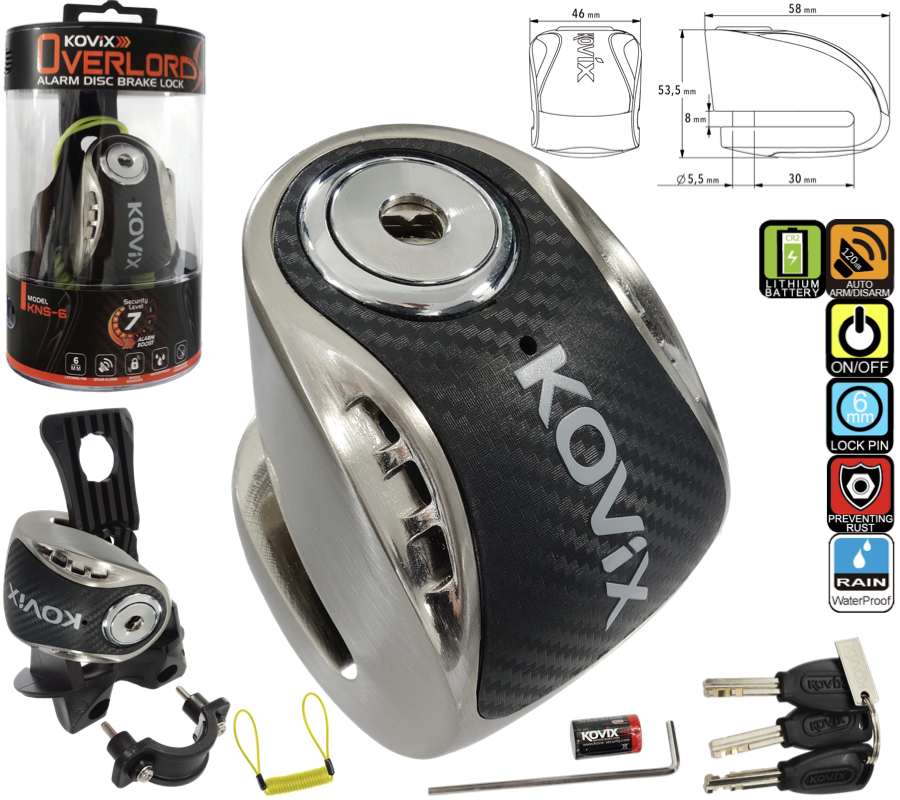 Blokada tarczy hamulcowej z alarmem KOVIX KNS6 metaliczny /// KOVIX