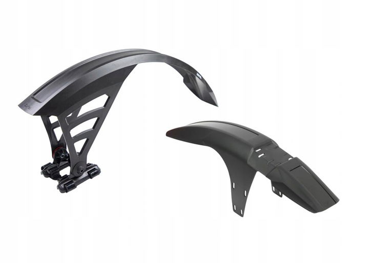 Oba błotniki wykonano z wytrzymałego technopolimeru wzmocnionego włóknem szklanym, dzięki czemu są lekkie, a jednocześnie bardzo odporne na uszkodzenia mechaniczne. Przemyślana konstrukcja sprawia, że błotniki są dyskretne i wydajne – ich kształt pozwala na montaż blisko koła, co zwiększa skuteczność ochrony i nie zaburza wyglądu roweru.