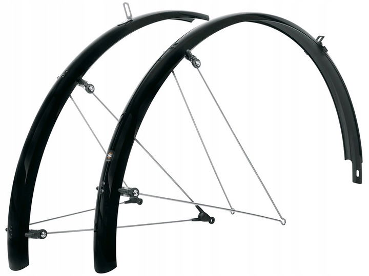 Czarny, uniwersalny kolor oraz nowoczesny design sprawiają, że błotniki świetnie komponują się z każdym rowerem, a ich montaż do ramy i widelca jest szybki i wygodny. Dzięki solidnej konstrukcji zestaw zapewnia skuteczną ochronę przed błotem, wodą i innymi zabrudzeniami, pozwalając cieszyć się jazdą bez względu na pogodę.