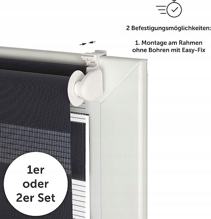 ✅ BEZ WIERCENIA - Rolety można indywidualnie dopasować do szerokości ramy za pomocą uchwytu Klickfix na ramie okna. Rolety można łatwo zamontować bez wiercenia.