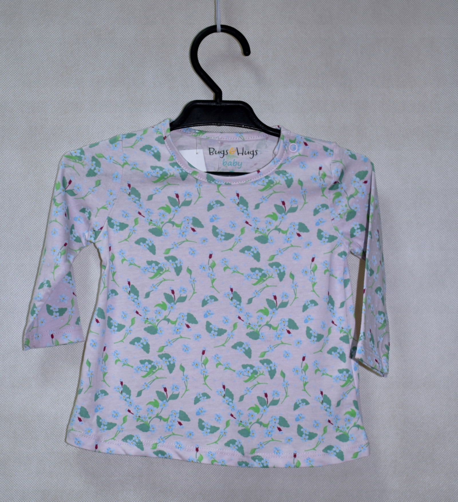 Szukasz uroczego dodatku do garderoby Twojego maluszka? Oto bluzka w kwiaty, w rozmiarze 74 cm, marki Bugs&Hugs!