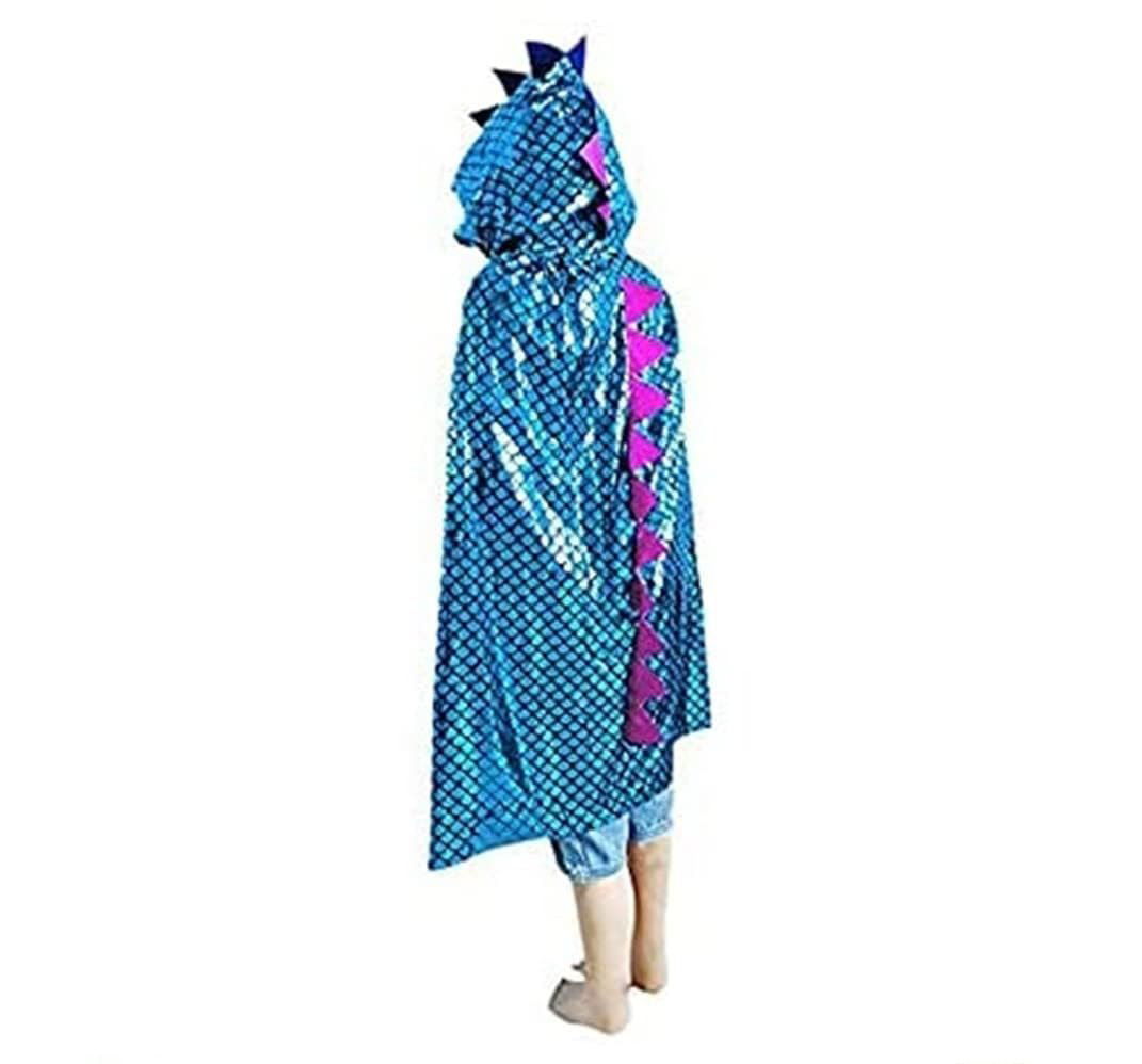Peleryna dinozaura to doskonały strój dla chłopców i dziewczynek na różnego rodzaju okazje, takie jak Halloween, karnawał, bale maskowe, cosplay czy występy sceniczne. Wykonana z wysokiej jakości tkaniny z cekinowymi zdobieniami, peleryna zapewnia zarówno wygodę, jak i spektakularny wygląd.
