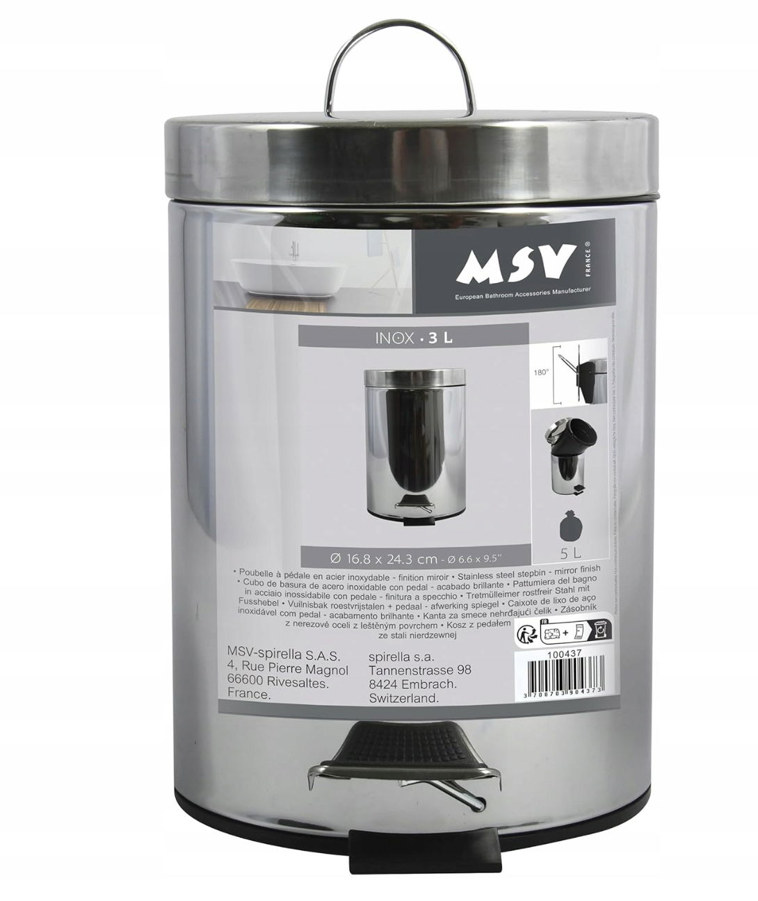 Kosz MSV wykonany z błyszczącej stali nierdzewnej to połączenie nowoczesnego designu z trwałością i wygodą użytkowania.