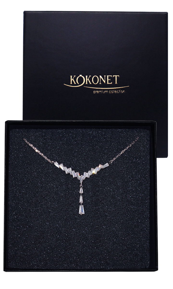 Błyszczący wiszący naszyjnik srebrny cyrkonie elegancka biżuteria w pudełku