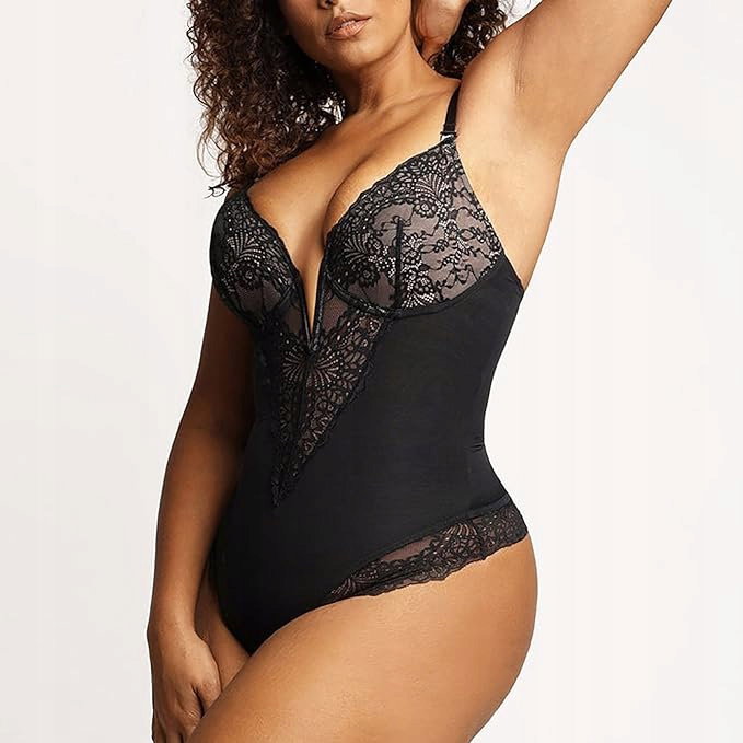 Koronkowe body dla kobiet, modelujące body z dekoltem w serek rozmiar XXL