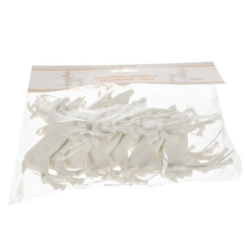 - SPECYFIKACJA - kolor: biały z brokatem; materiał: PP; ilość sztuk: 9; wymiary: 9,5 x 7 cm; waga: 84 g; waga w opakowaniu: 89 g.