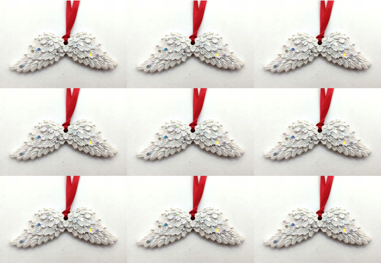Bombki na Choinkę - Zestaw 9 szt. Stroik Skrzydła Anioła Brokatowe HANDMADE