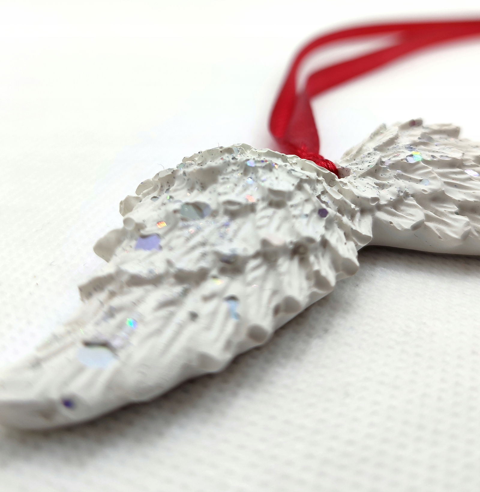 Prezentujemy wyjątkowy Hand Made - figurki z gipsu polimerowego w kształcie biało-brokatowych skrzydełek anioła. Ta delikatna i elegancka dekoracja wnętrza została starannie wykonana z najwyższą precyzją.