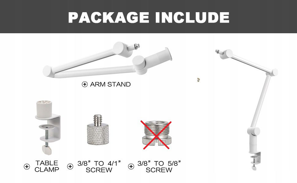 Kompatybilność: złącze 5/8" jest kompatybilne z wieloma mikrofonami, takimi jak Blue Yeti, Blue Snowball, AT2020, AT2020USB+, AT2035, ATR2500-USB, ATR2100-USB, SM7B, HyperX QuadCast SoloCast itp.