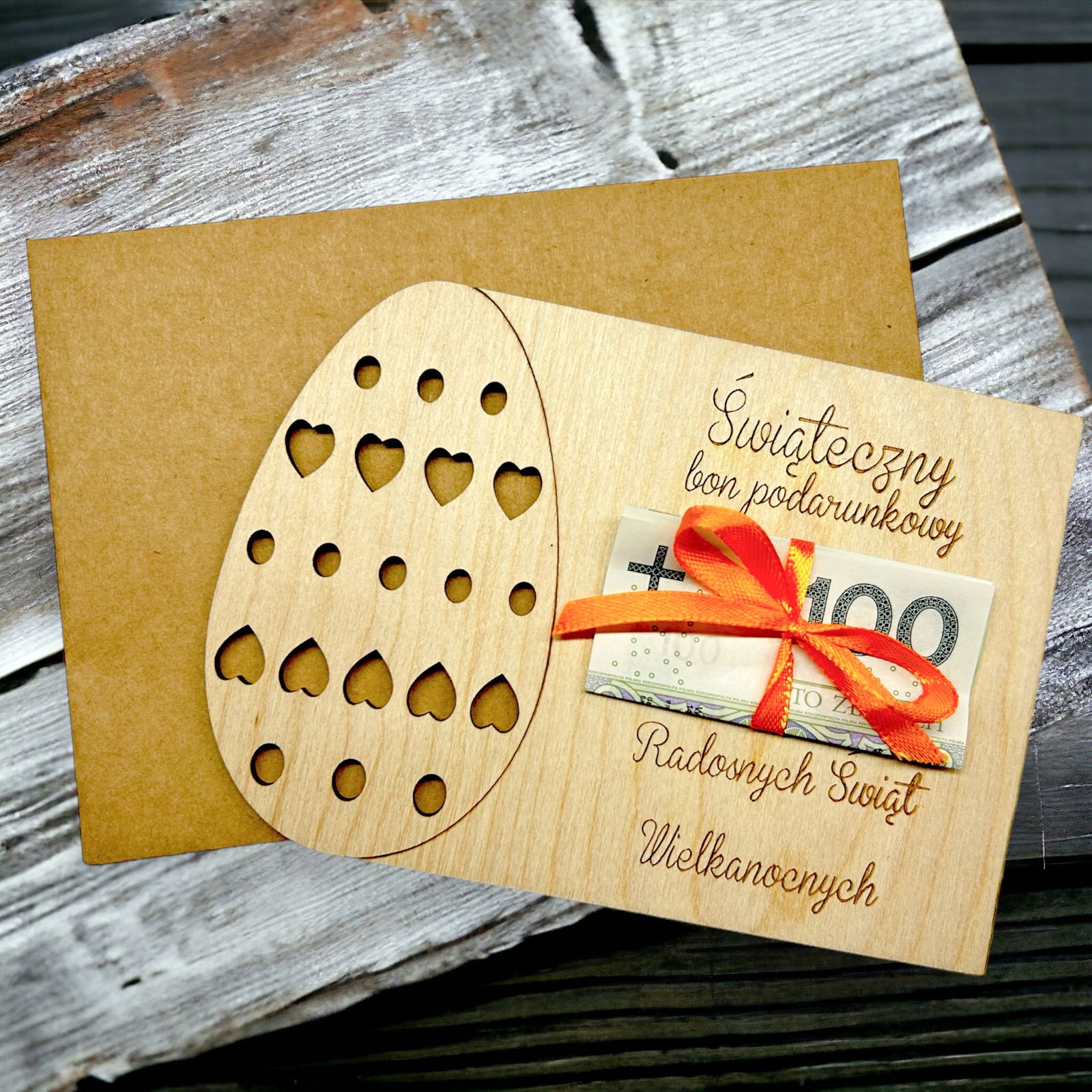 Bon świąteczny drewniany - voucher- kartka wielkanocna wz2 RP148