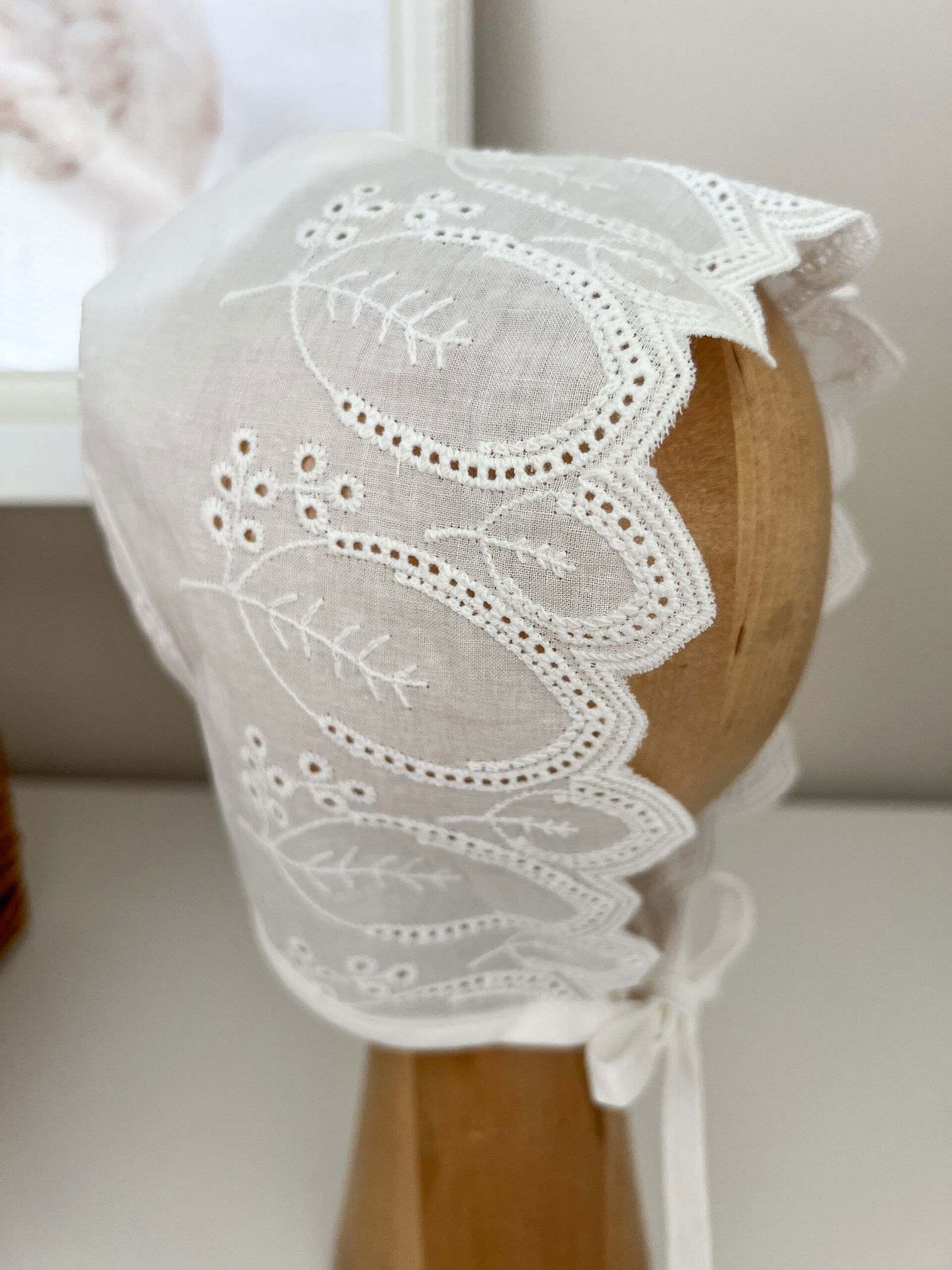 Rozmiar: Drewniana główka prezentująca ma obwód 42 cm co odpowiada standardowo rozmiarowi dla dziecka 3-6 mc (taki rozmiar w większości przypadków jest zaprezentowany na zdjęciach)