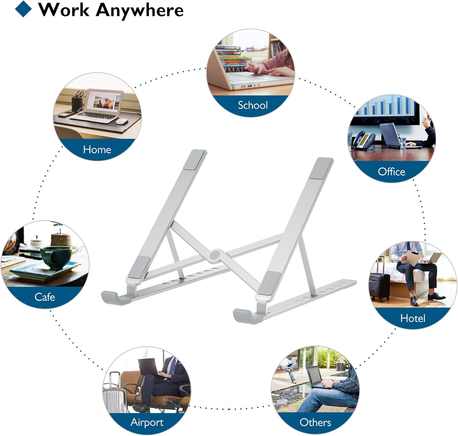 ⭐Uniwersalne Zastosowanie w Domu, Biurze i Poza Nim: Nasz stojak na komputer jest wszechstronny i nadaje się do pracy w biurze, szkole, czy kawiarni. Idealny dla osób pracujących z laptopami, tabletami, a także do używania z monitorami czy urządzeniami multimedialnymi. Uchwyt zapewnia stabilność i wygodę pracy w każdych warunkach, a łatwa regulacja sprawia, że jest to akcesorium odpowiednie do różnych rodzajów powierzchni roboczych.