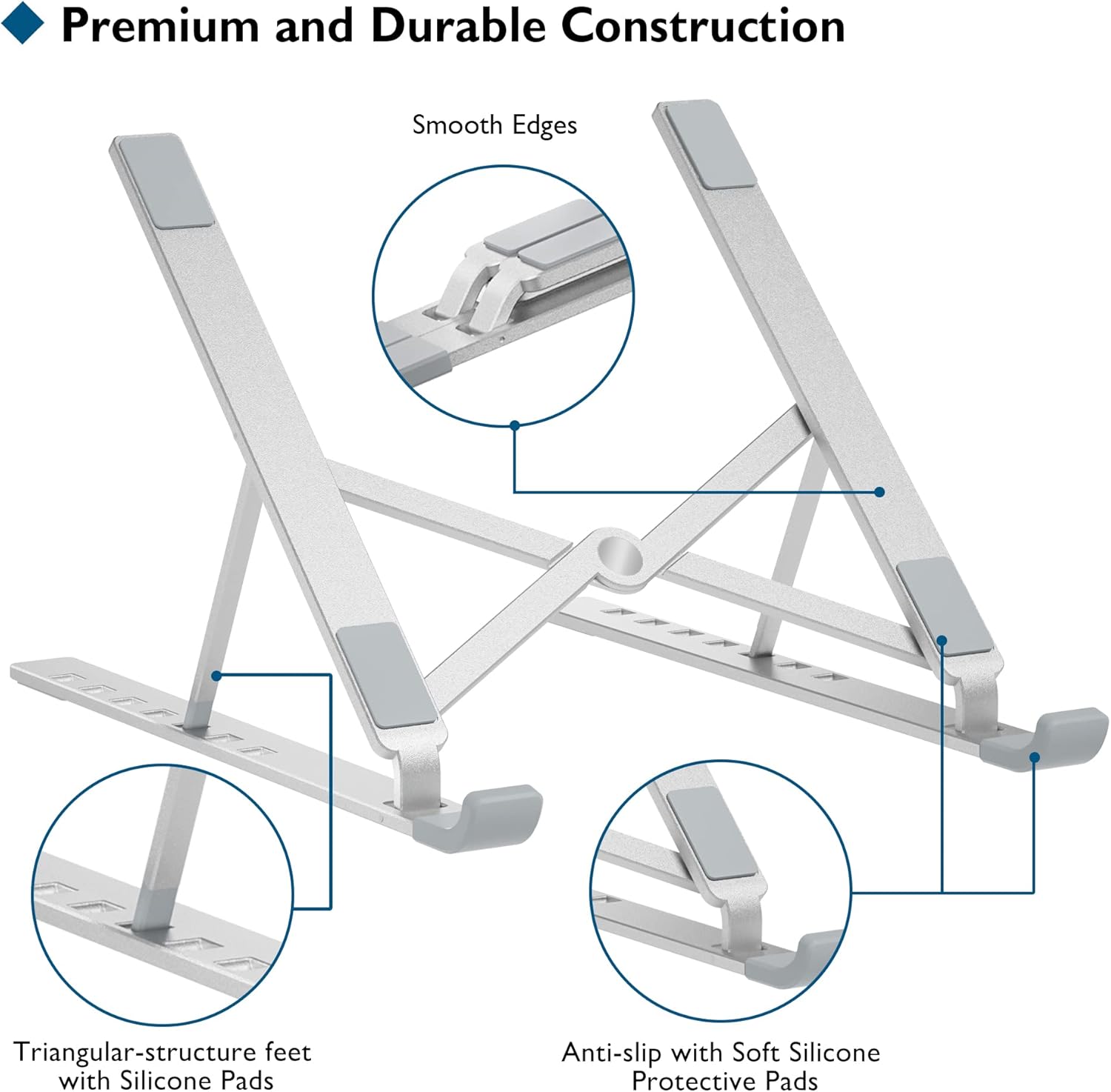 ⭐Doskonała Ochrona Twojego Laptopa i Stabilność: Antypoślizgowe silikonowe podkładki zapewniają stabilność i zapobiegają przesuwaniu się urządzenia. Dzięki gładkim krawędziom, stojak na laptopa chroni przed zadrapaniami i uszkodzeniami. Trójkątny projekt zapewnia pewne trzymanie nawet w intensywniejszym użytkowaniu, co sprawia, że idealnie nadaje się do laptopów, tabletów, oraz tabletów graficznych.