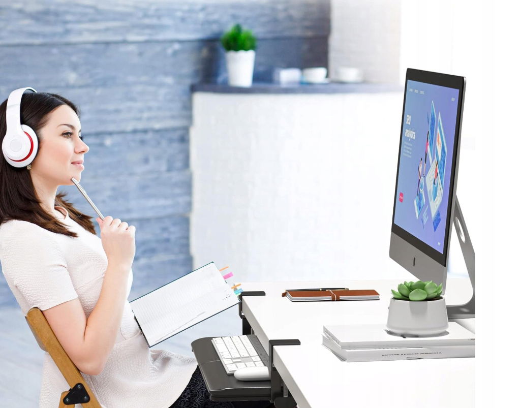 - ✴️Oszczędność miejsca: Dzięki wsuwanej konstrukcji taca na klawiaturę może być łatwo schowana pod biurkiem, gdy nie jest używana, co maksymalizuje przestrzeń roboczą i utrzymuje porządek w miejscu pracy.