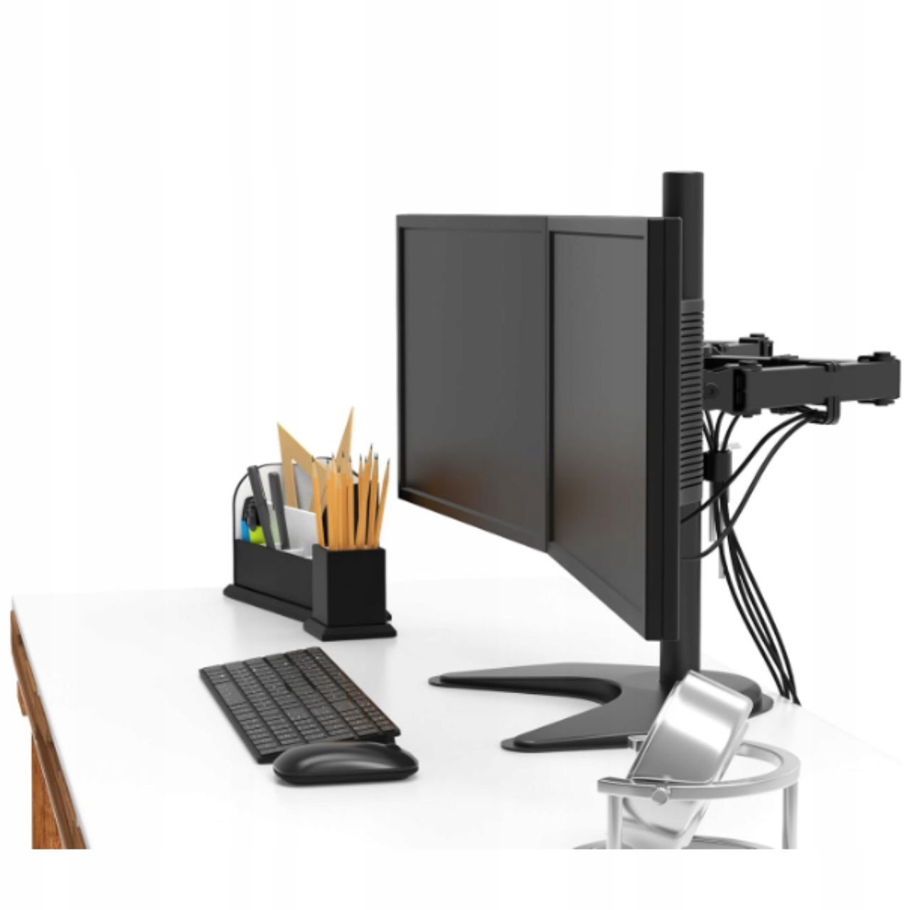 ✅ Oszczędność miejsca – zwalnia przestrzeń na biurku, utrzymując porządek.