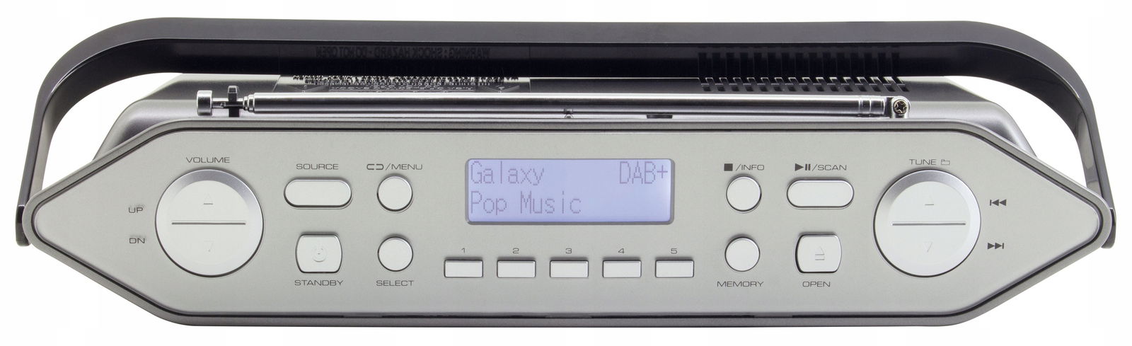 Boombox odbiera radio cyfrowe DAB+ lub FM PLL. Istnieje możliwość zapisania 20 stacji radiowych.