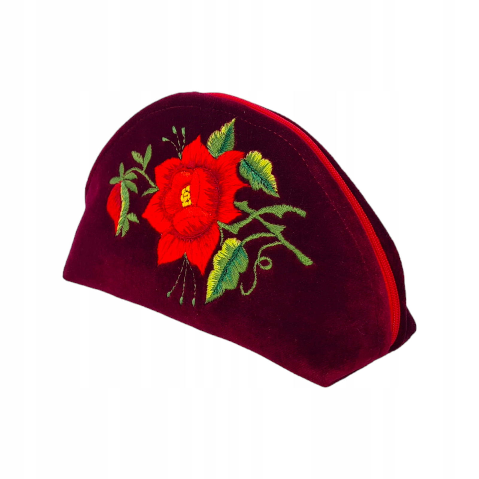 Bordowa kosmetyczka folk - czerwona róża