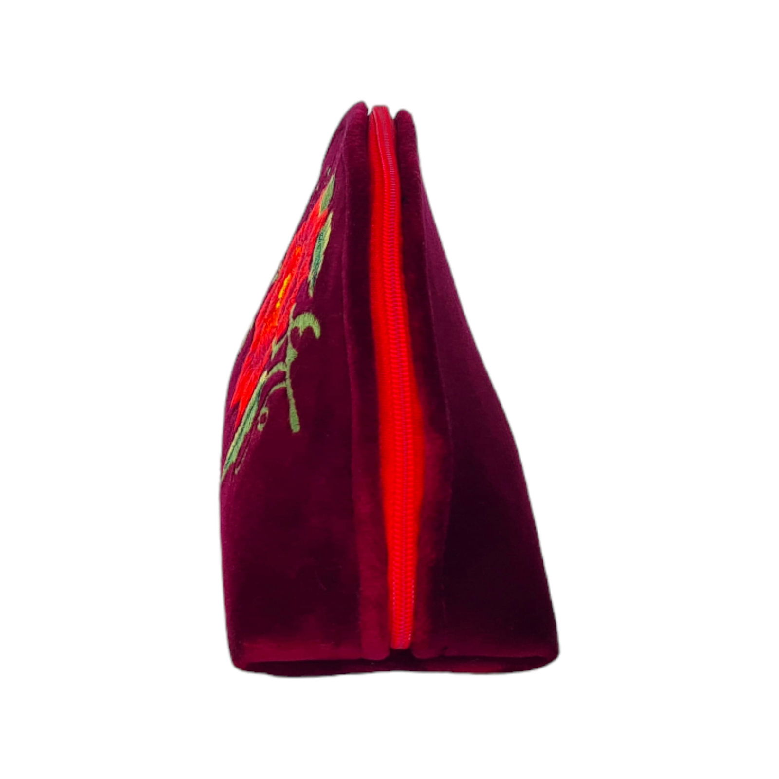 - Bordowy Kolor: Bogaty bordowy odcień kosmetyczki harmonijnie komponuje się z żywą czerwienią haftowanej róży, tworząc wyjątkowy i elegancki wygląd, który przyciąga wzrok.