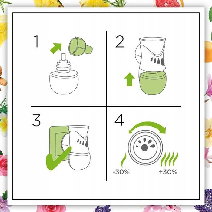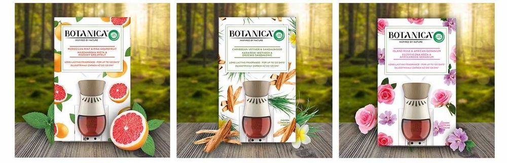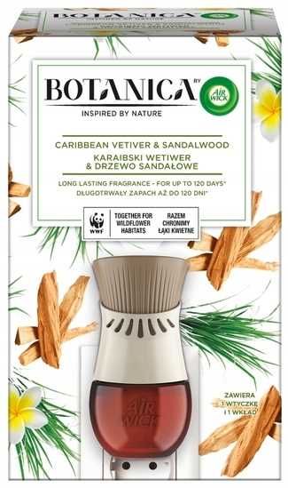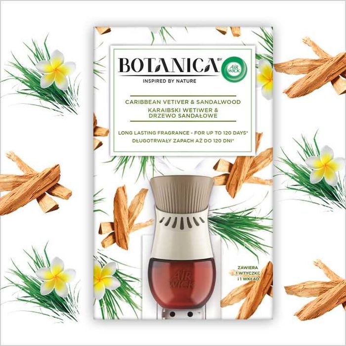 Botanica by Air Wick Karaibski Wetiwer & Drzewo Sandałowe/Caribbean Vetiver & Sandalwood 19ml Komplet ODKRYJ NOWE, EGZOTYCZNE ZAPACHY BOTANICA Z ODPOWIEDZIALNIE POZYSKIWANYMI SKŁADNIKAMI Rozpieść swoje zmysły autentyczną świeżością karaibskiego wetiweru i ciepłem zapachu drzewa sandałowego. Olejek eteryczny z wetiweru jest odpowiedzialnie pozyskiwany z wyspy Haiti. W ten sposób pomagamy farmerom, którzy trudnią się zbieraniem tak cennego składnika, w budowaniu lokalnej społeczności. Nasze zapachy Botanica są tworzone z egzotycznych składników naturalnego pochodzenia pozyskiwanych odpowiedzialnie i z dbałością o przyrodę. Wszystkie nasze zapachy wypełnione są naturalnymi olejkami eterycznymi i nie zwierają ftalanów, acetonu ani barwników. Elegancki design urządzenia, które pozwala Ci dowolnie ustawić częstotliwość zapachu i kontrolować jego uwalnianie tak, by dostosować intensywność do swoich potrzeb. Nowy kształt urządzenia uwalnia zapach w górę oraz na boki pozwalając mu otoczyć Cię i wypełnić całe pomieszczenie. Elektryczny odświeżacz powietrza Botanica by Air Wick pasuje do każdego Twojego pomieszczenia. Idealny do salonu i przedpokoju. Świetnie sprawdza się też w kuchni i sypialni. Specyfikacja: Zapachy zawierają naturalne olejki eteryczne Nie zawiera ftalanów, acetonu, barwników Długotrwały zapach aż do 120 dni Ze składników pozyskiwanych z dbałością o przyrodę Inspirowana naturą Kontrola intensywności zapachu Odpowiednie do każdego pomieszczenia Nowe urządzenie - ZAPACH UWALNIANY W GÓRĘ I NA BOKI Przechowywać w temperaturze otoczenia Pojemność - 19 ml Waga z opakowaniem - 0,2 kg Wymiary: Wysokość - 150 mm Szerokość - 92 mm Głębokość - 60 mm Jak używać odświeżaczy powietrza? Zdejmij plastikową nakrętkę z wkładu. Umieść wkład w dolnej części wtyczki, aż usłyszysz kliknięcie. Upewnij się, że wkład cały czas znajduje się w pozycji pionowej. Umieść wtyczkę w gniazdku. Aby zwiększyć lub zmniejszyć intensywność zapachu, przekręć tarczę na górze wtyczki. Największy znak = największa intensywność. Aby wymienić wkład, wyjmij urządzenie z gniazdka i wyciągnij buteleczkę z wtyczki Botanica by Air Wick, Karaibski Wetiwer, Drzewo Sandałowe, odświeżacz powietrza, elektryczny wkład, naturalne olejki eteryczne, egzotyczne zapachy, odpowiedzialne pozyskiwanie, ekologiczne składniki, intensywność zapachu, neutralizator zapachów, elegancki design, dekoracyjny odświeżacz, do pomieszczeń, długotrwały zapach, kontrola intensywności, sieciowe zasilanie, wtyczka, zestaw z wkładem, marki Air Wick, bez ftalanów, bez acetonu, bez barwników, inspiracja naturą, zapachy egzotyczne, kolekcja Botanica, Haiti wetiwer, luksusowy zapach, domowe odświeżenie, styl życia, aromaty, zachwycające zapachy, komfort i wygoda, powietrze, neutralizacja, piękno natury, nowoczesny design, ochrona środowiska, zapach dominujący drzewo sandałowe, wydajność, zrównoważony rozwój, zdrowe otoczenie, nowe urządzenie, zapach karabin, wyspa Haiti, wspieranie lokalnych społeczności, zrównoważone źródła.