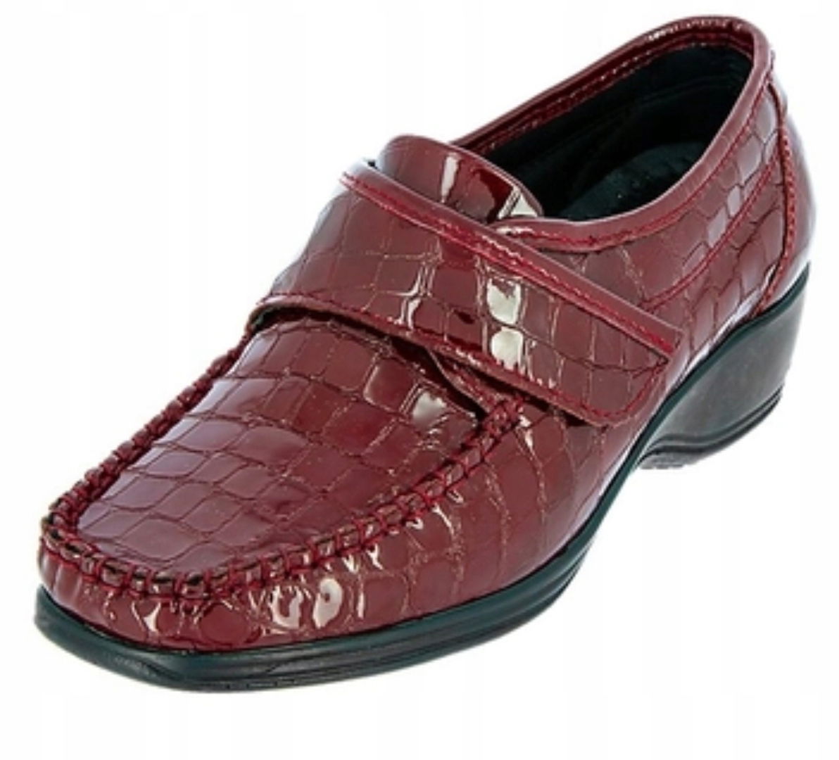 Cholewka z lakierowanej skóry z efektem krokodyla.