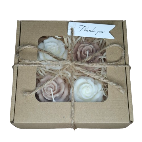 Box Świece Sojowe Prezent Zestaw 4 Róże – Idealny Podarunek na Dzień Babci, Dziadka i Walentynki!