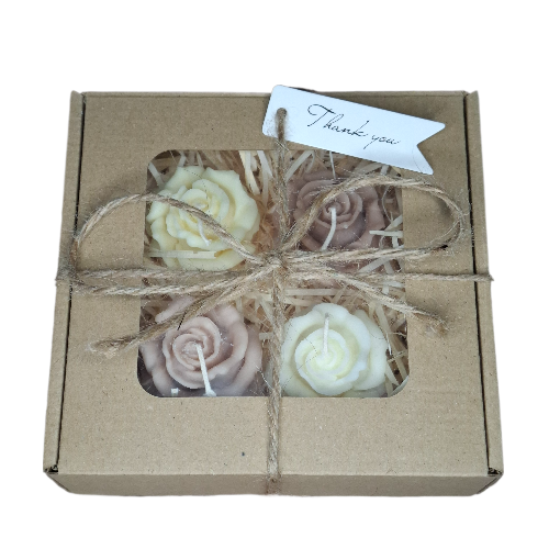 Box Świece Sojowe Prezent Zestaw 4 Róże – Idealny Podarunek na Dzień Babci, Dziadka i Walentynki!