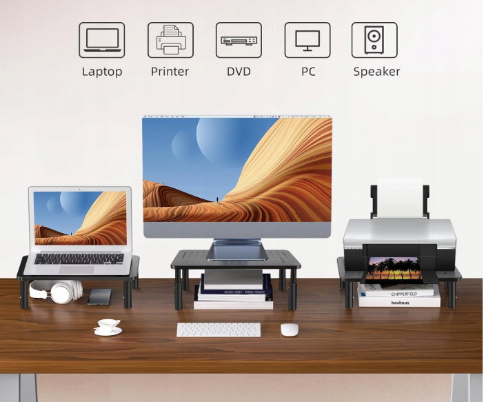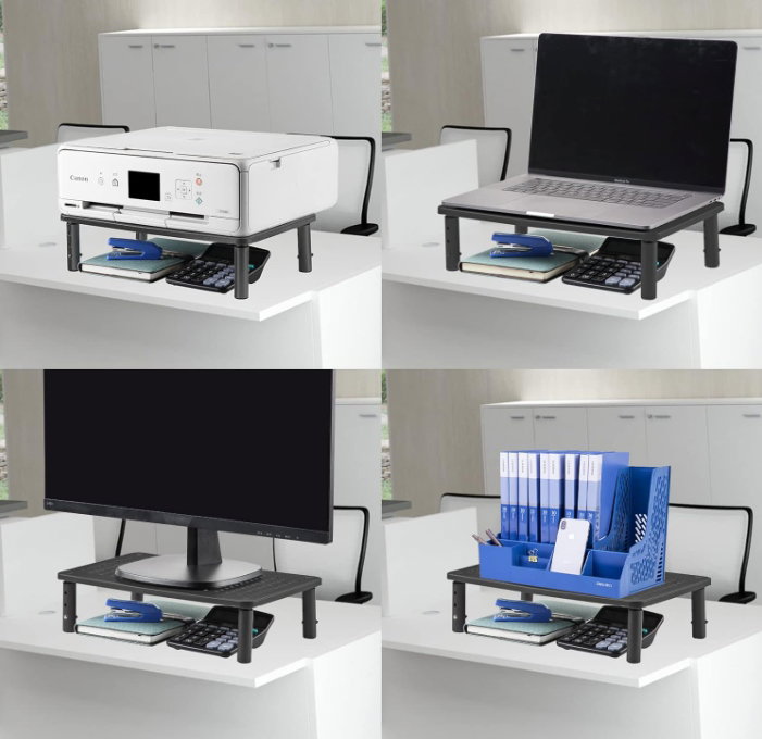 - ✴️Wytrzymały materiał – duża trwała metalowa półka o wymiarach 370 x 235 mm pasuje do większości płaskich wyświetlaczy, laptopów i drukarek, maksymalna waga nośna do 20 kg. Antypoślizgowe gumowe podkładki zapobiegają ślizganiu się lub uszkodzeniu powierzchni roboczej. Elegancki, nowoczesny czarny design uzupełnia każde biurko, dodając jednocześnie dodatkowej przestrzeni pod stojakiem do przechowywania.
