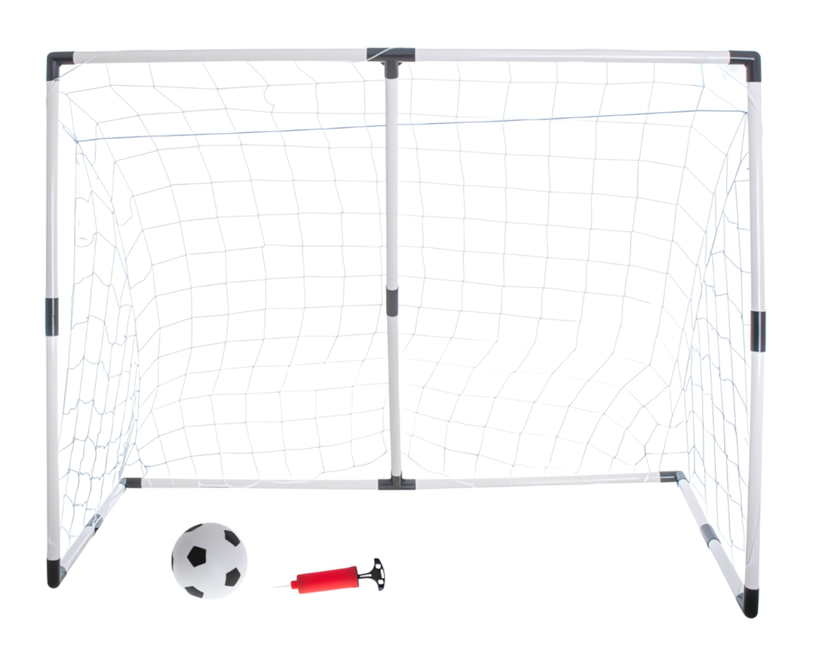- Zawartość zestawu: 1 duża bramka (lub 2 małe bramki), piłka, pompka, śledzie mocujące
