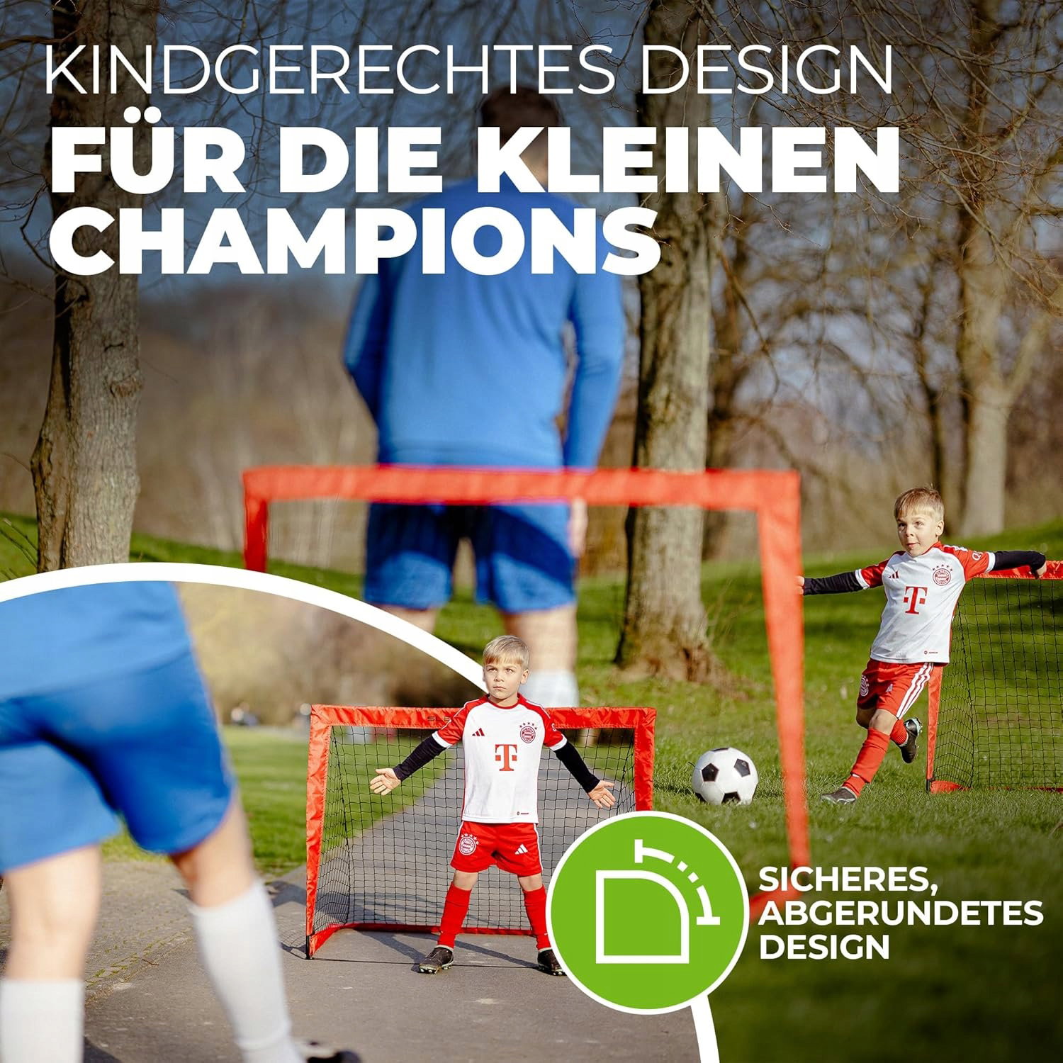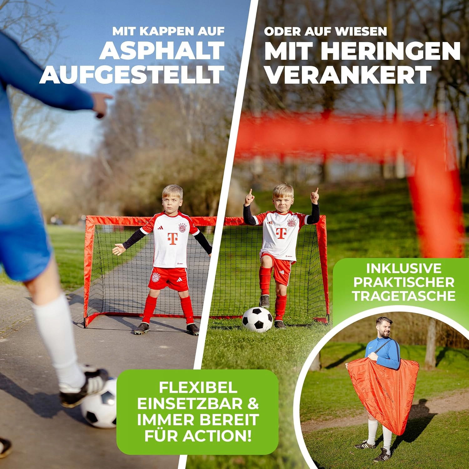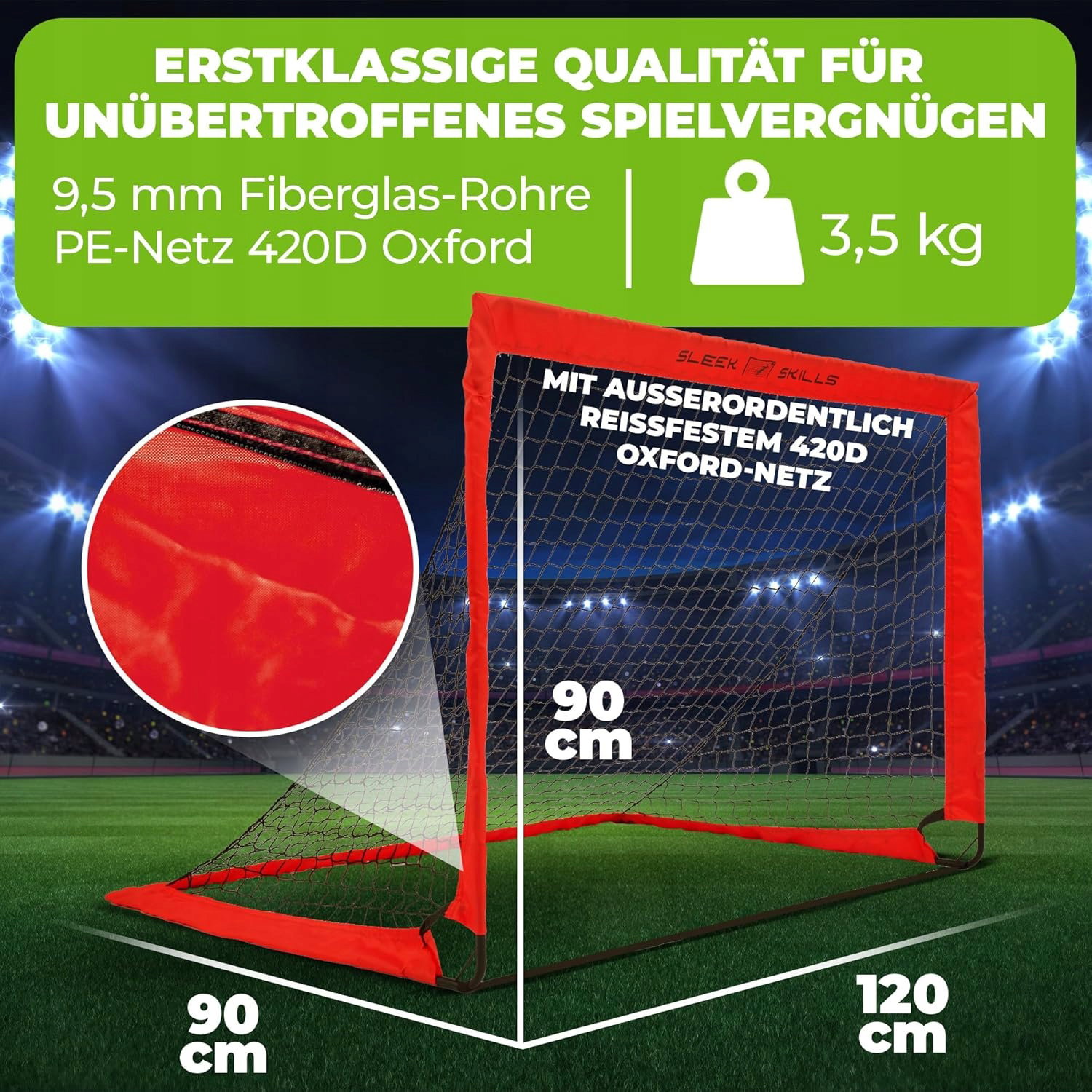 Zestaw 2 bramek do piłki nożnej dla dzieci SleekSkills do użytku w domu, ogrodzie i na zewnątrz — składany, z drążkami wzmocnionymi włóknem szklanym i torbą do noszenia