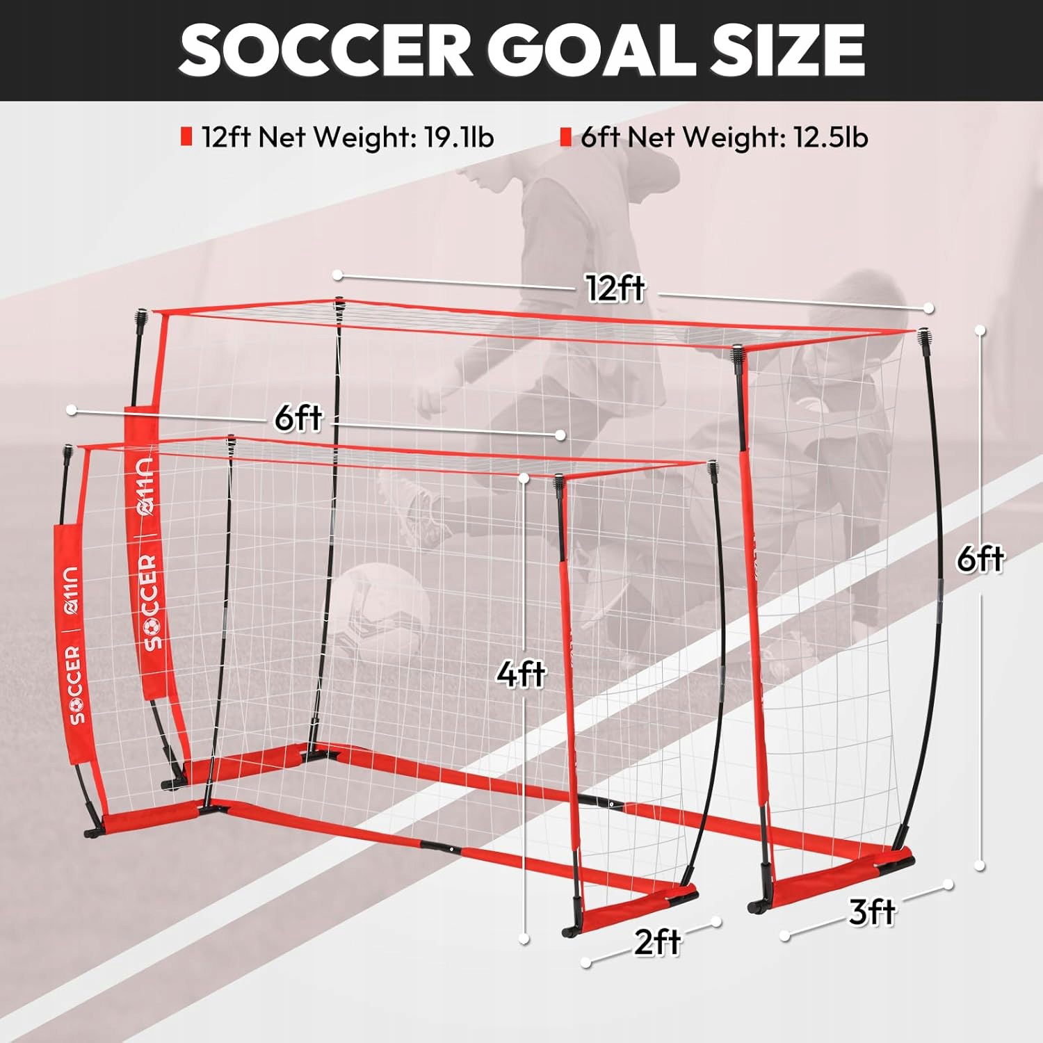 Przenośna bramka do piłki nożnej - 12x6 stóp 360x180cm Składana siatka do piłki nożnej do ćwiczeń na podwórku i treningów drużynowych