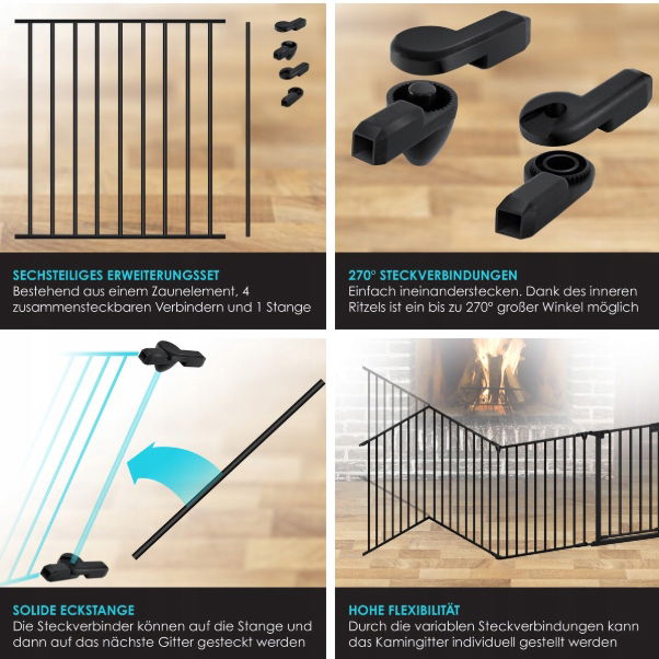 - ➡️ ROZSZERZENIE: Dzięki różnym możliwościom umieszczenia ta bramka dziecięca jest elastyczna i może być używana jako furtka, bramka na klatkę schodową lub kojec dla zwierząt domowych lub szczeniąt. Brama dostarczana jest z elementem ogrodzenia, 4 łącznikami, które można ze sobą łączyć oraz poprzeczką. Wewnętrzny zębnik umożliwia kąt do 270°, co pozwala na umieszczenie łączników na słupku, a następnie na następnym płocie.
