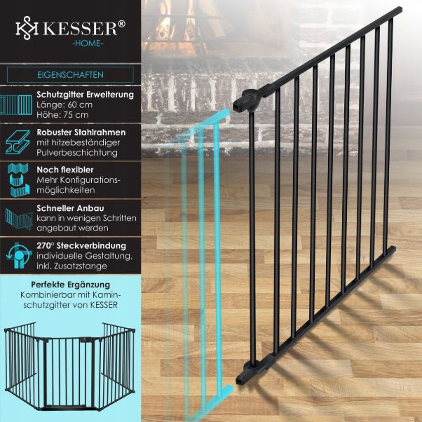 ✅ Bramka Zabezpieczająca Dla Dzieci Osłona Kominkowa Jednoelementowa Czarna ✅