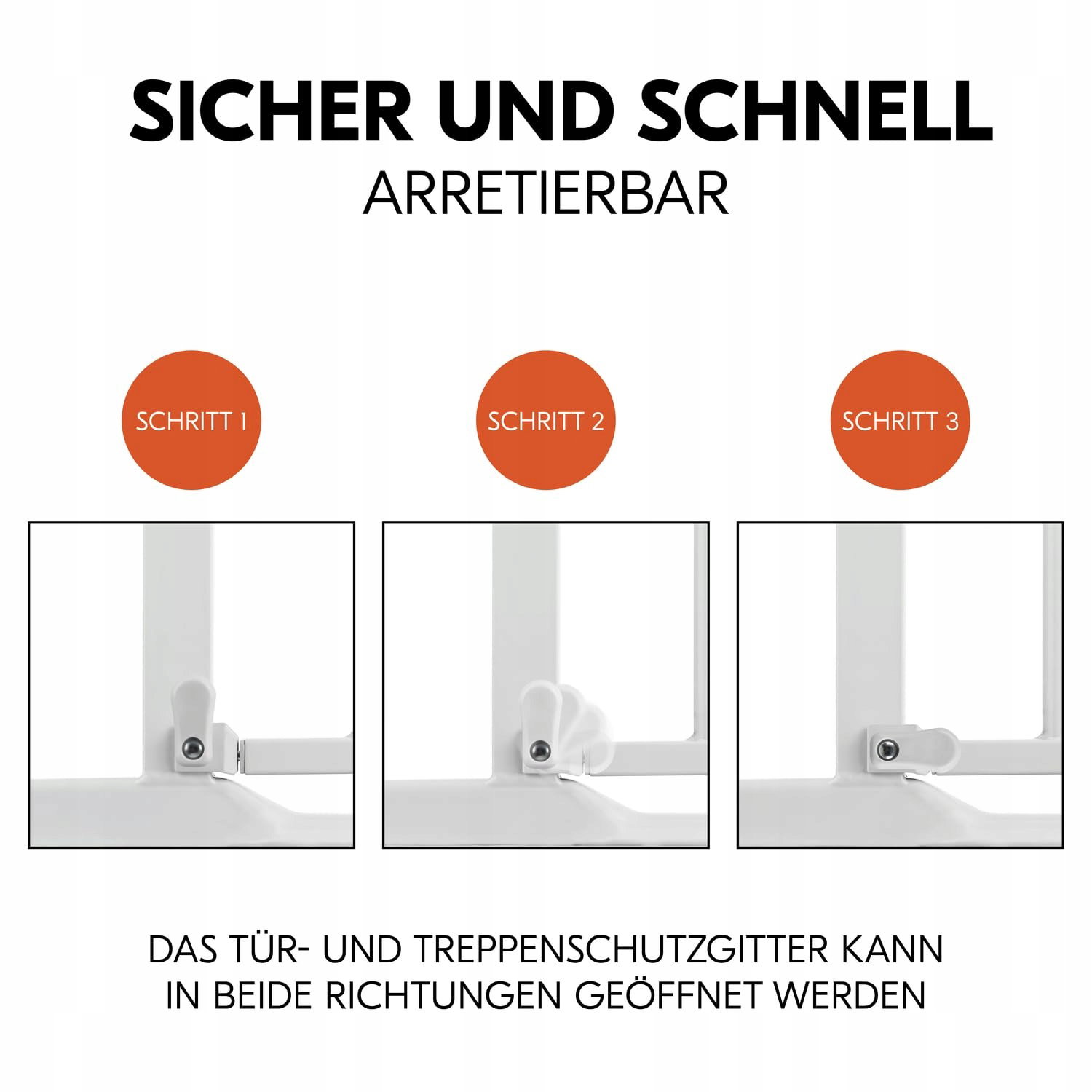 Bramka zabezpieczająca Hauck dla dzieci i zwierząt – metalowa, biała, regulowana do szerokości 84-89 cm