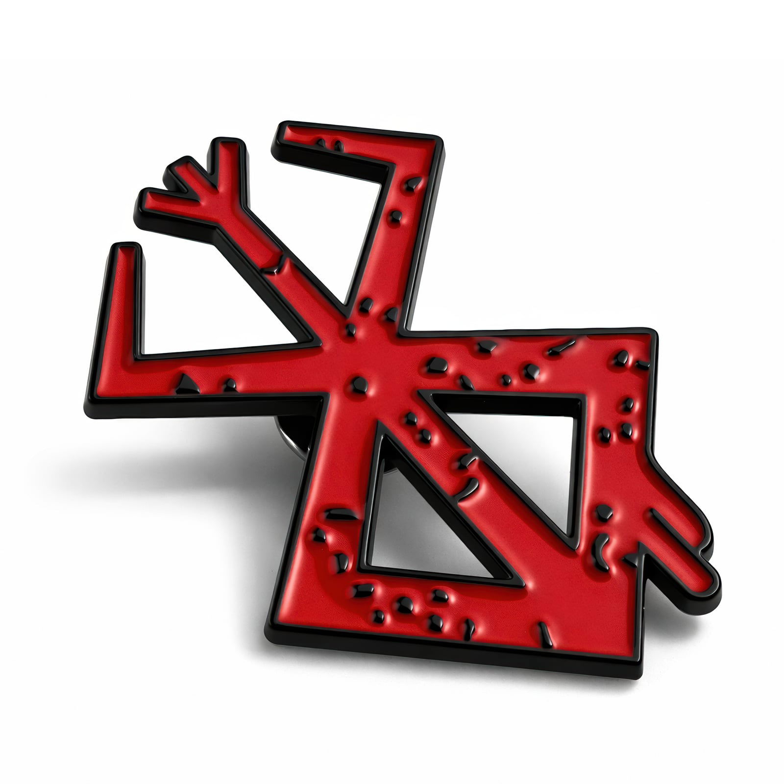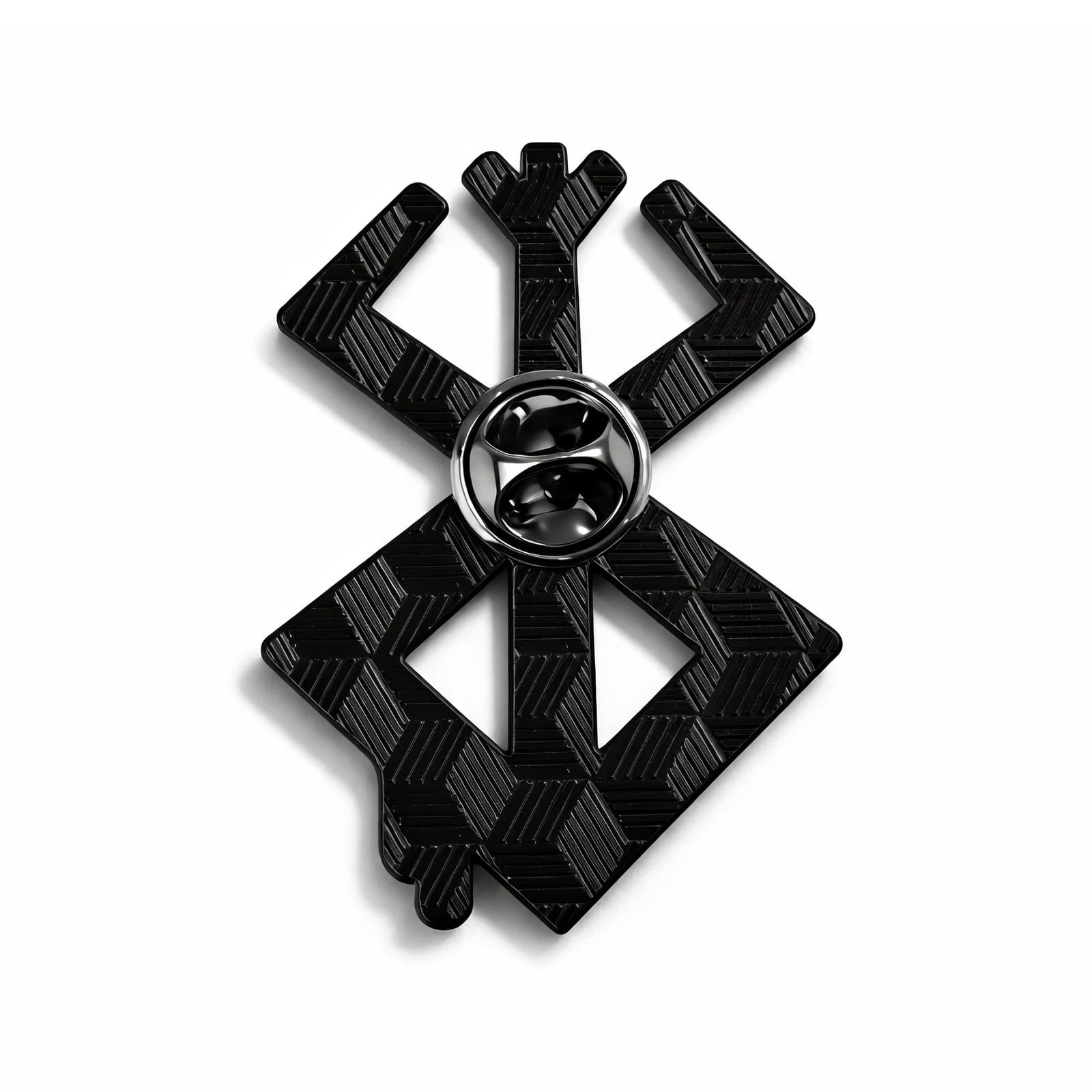 Przeklęty Znak Ofiary, sam znak, który wiąże Gutsa w ciemności, teraz wisi jako nosny omen. Wykuta z solidnego metalu i wykończona w połysk północnej czerni, 6 cm emblemat nosi precyzyjny odwrócony pentagram oraz subtelną fakturę, która odzwierciedla ponury styl mangi. Solidny pierścień przechodzi przez górę,