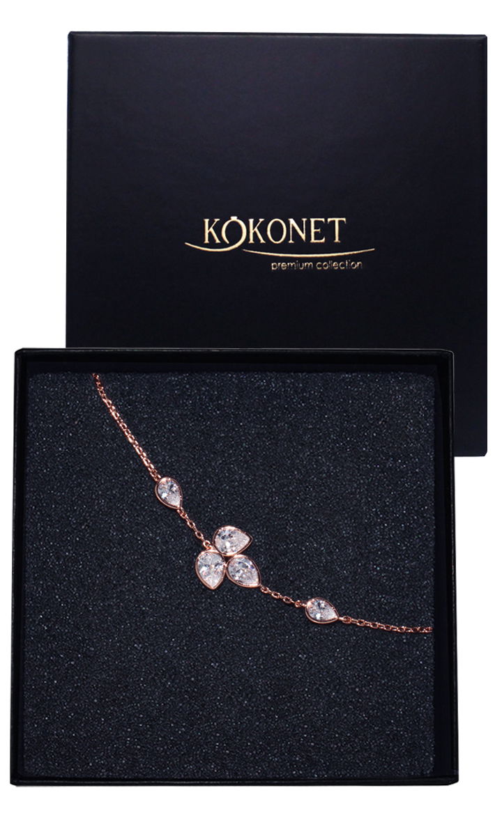 Ozdobna bransoletka z łezkami w kolorze różanego złota, która łączy nowoczesność i klasykę to idealny wybór dla Panny Młodej, która szuka minimalistycznej ślubnej biżuterii z efektem blasku. Piękny jasny kolor złota będzie pasował do obrączki, a możliwość regulacji i dodatkowo skrócenia według Twojego życzenia sprawi, że bransoletka będzie perfekcyjnie pasować na Twój nadgarstek.