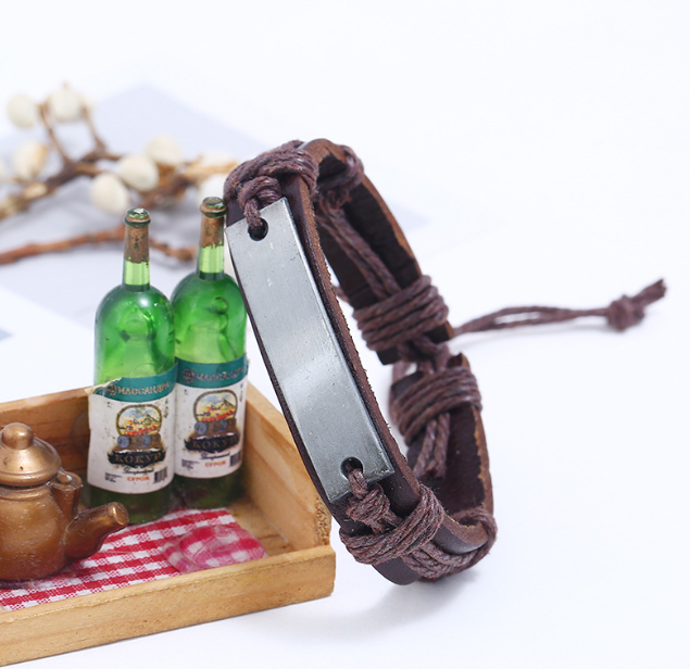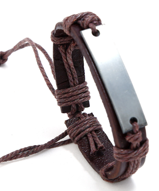 Bransoletka Męska Skórzana Zawieszka Do Grawerowania Na Prezent Elegancka