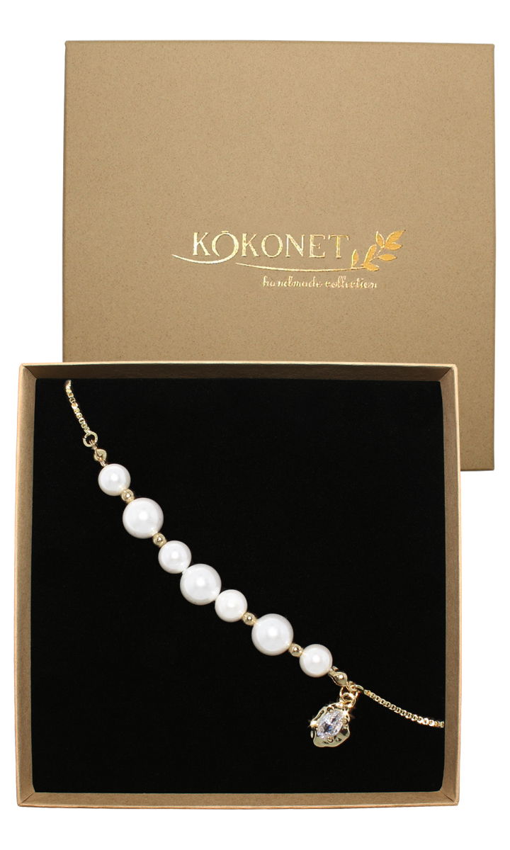 Bransoletka robiona z perłami PERŁOWA zawieszka regulowana złota efekt