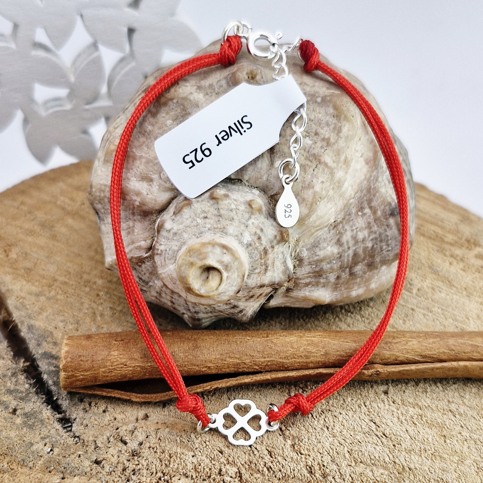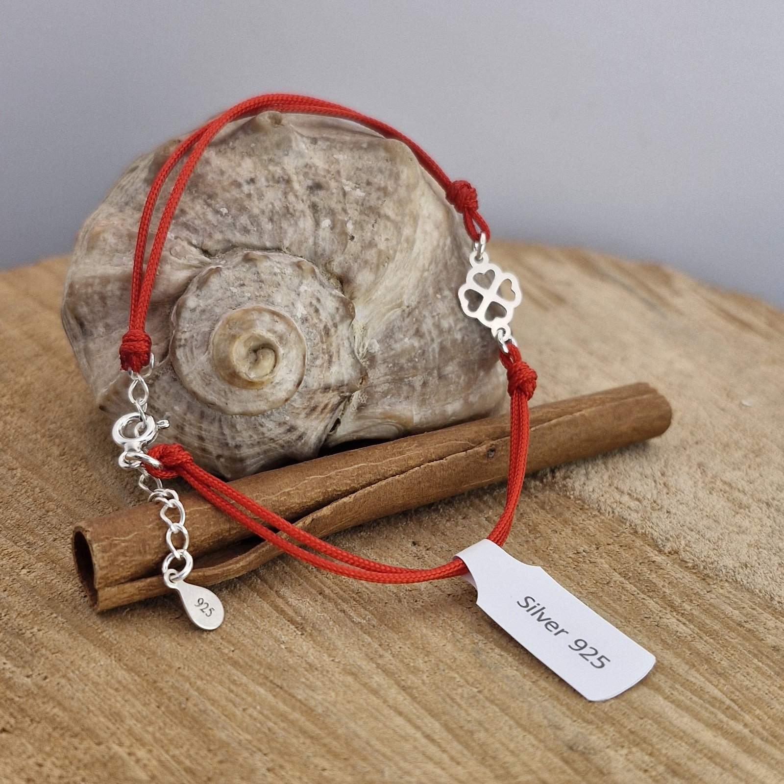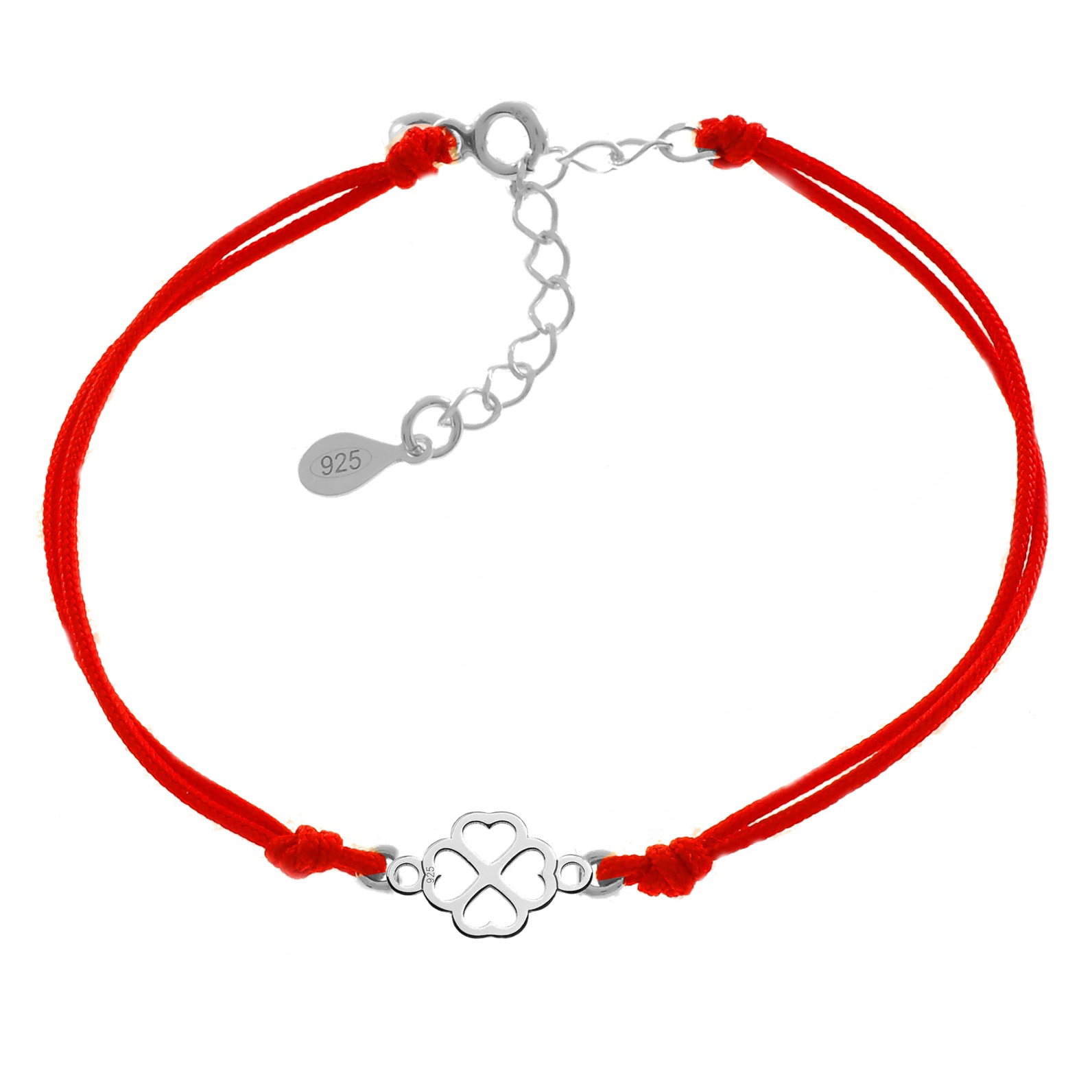 Oferujemy Państwu bransoletkę wykonaną z ładnego sznurka jubilerskiego który się nie mechaci z zawieszką w kształcie ażurowej koniczynki. Zapięcie bransoletki i zawieszka wykonane w całości ze srebra próby 925.