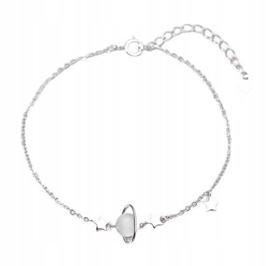 Bransoletka wykonana ze srebra 925 zachwyca delikatnym łańcuszkiem w srebrnym kolorze oraz uroczą zawieszką w kształcie planety otoczonej trzema gwiazdkami. Subtelny połysk srebra i nowoczesny motyw kosmiczny nadają jej wyjątkowego charakteru, idealnego do codziennych stylizacji. Biżuteria jest hipoalergiczna, nie uczula i posiada regulowane zapięcie dla komfortowego noszenia.