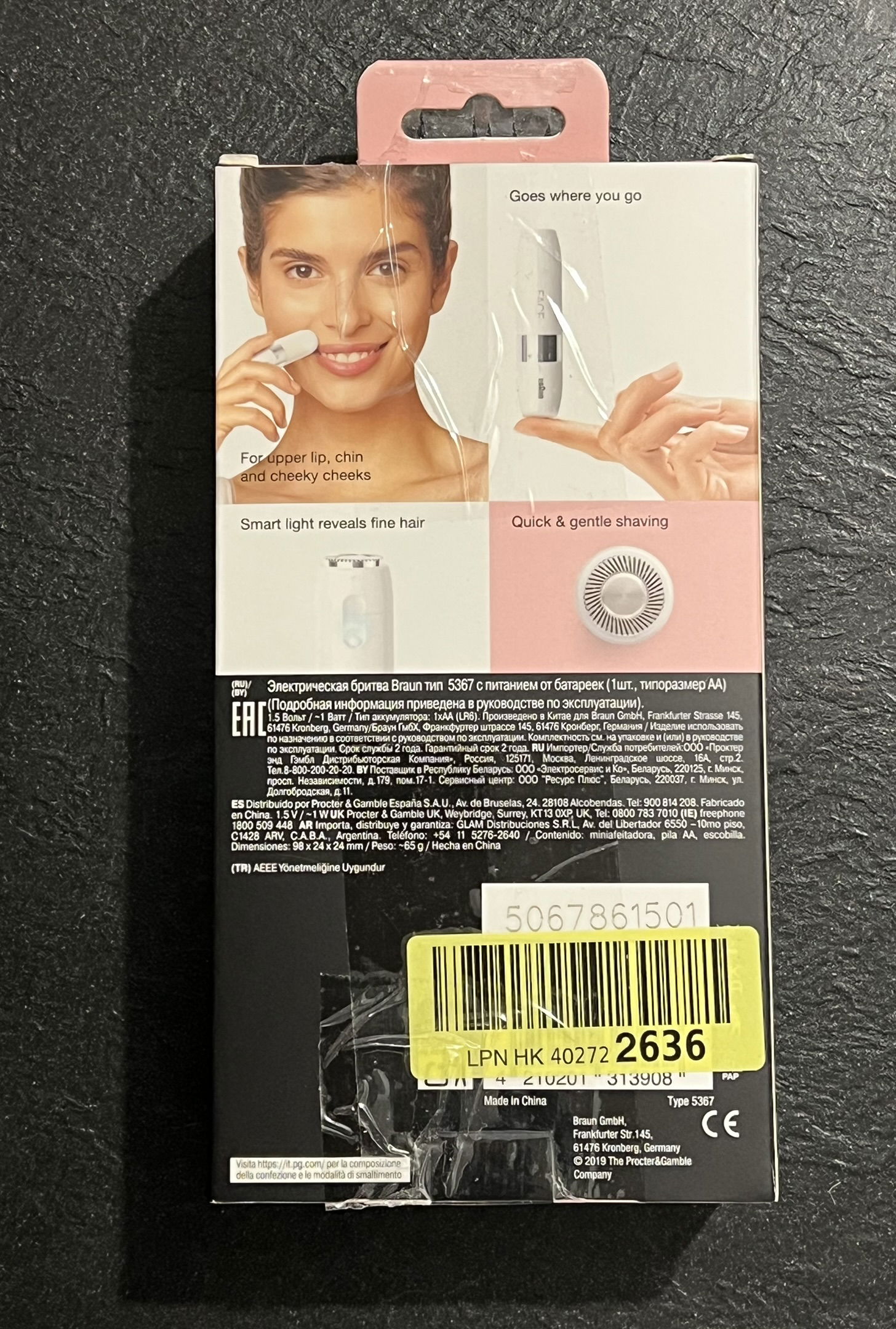 Braun Face Mini Hair Remover FS1000, elektryczna depilatorka do twarzy dla kobiet, golarka do twarzy i depilacja dla kobiet, szybka i delikatna golarka do górnej wargi, brody i policzków, idealna w podróży, biała