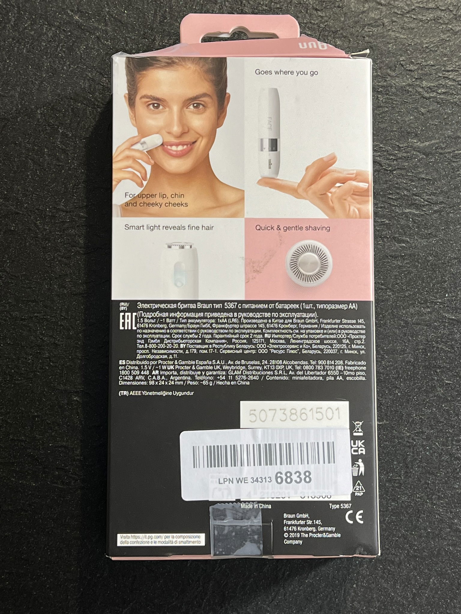Braun Face Mini Hair Remover FS1000, elektryczna depilatorka do twarzy dla kobiet, golarka do twarzy i depilacja dla kobiet, szybka i delikatna golarka do górnej wargi, brody i policzków, idealna w podróży, biała