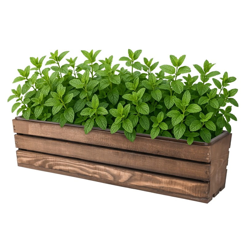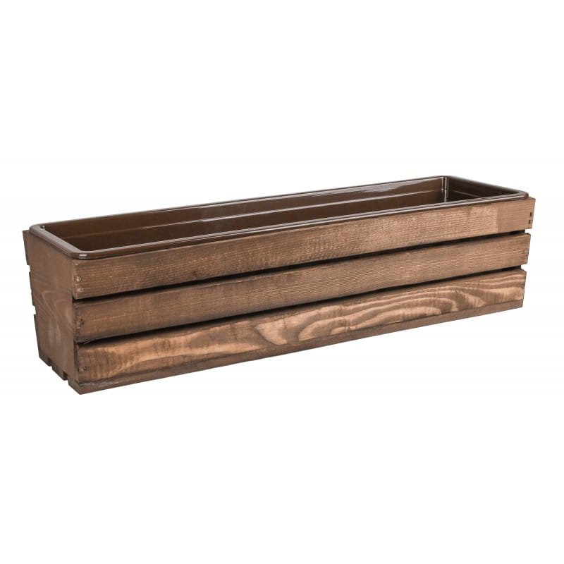 BRĄZOWA DREWNIANA SKRZYNKA NA KWIATY I ZIOŁA Z WKŁADEM 60x18x15 cm