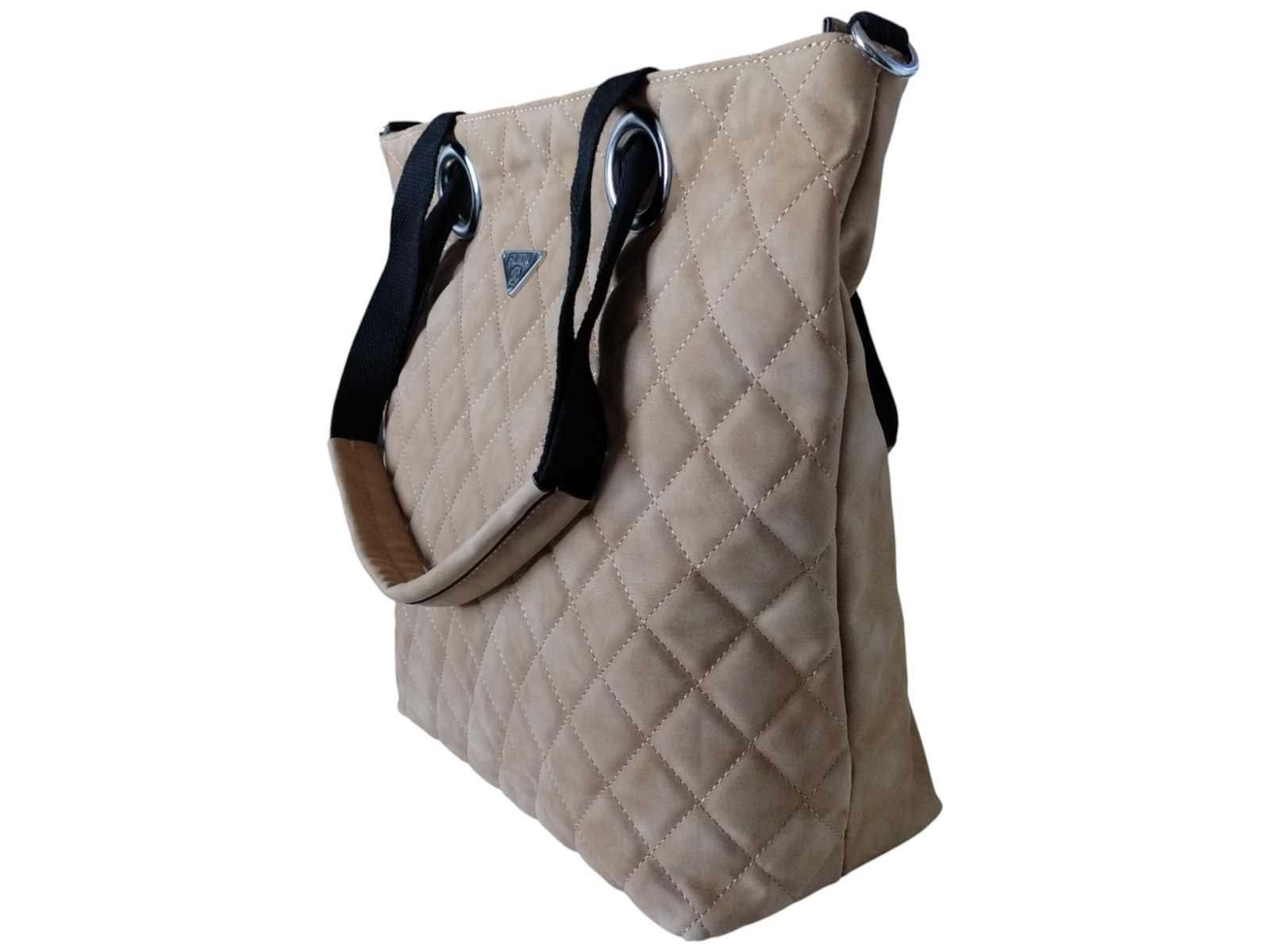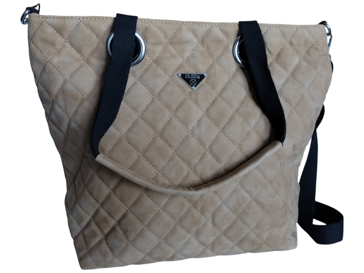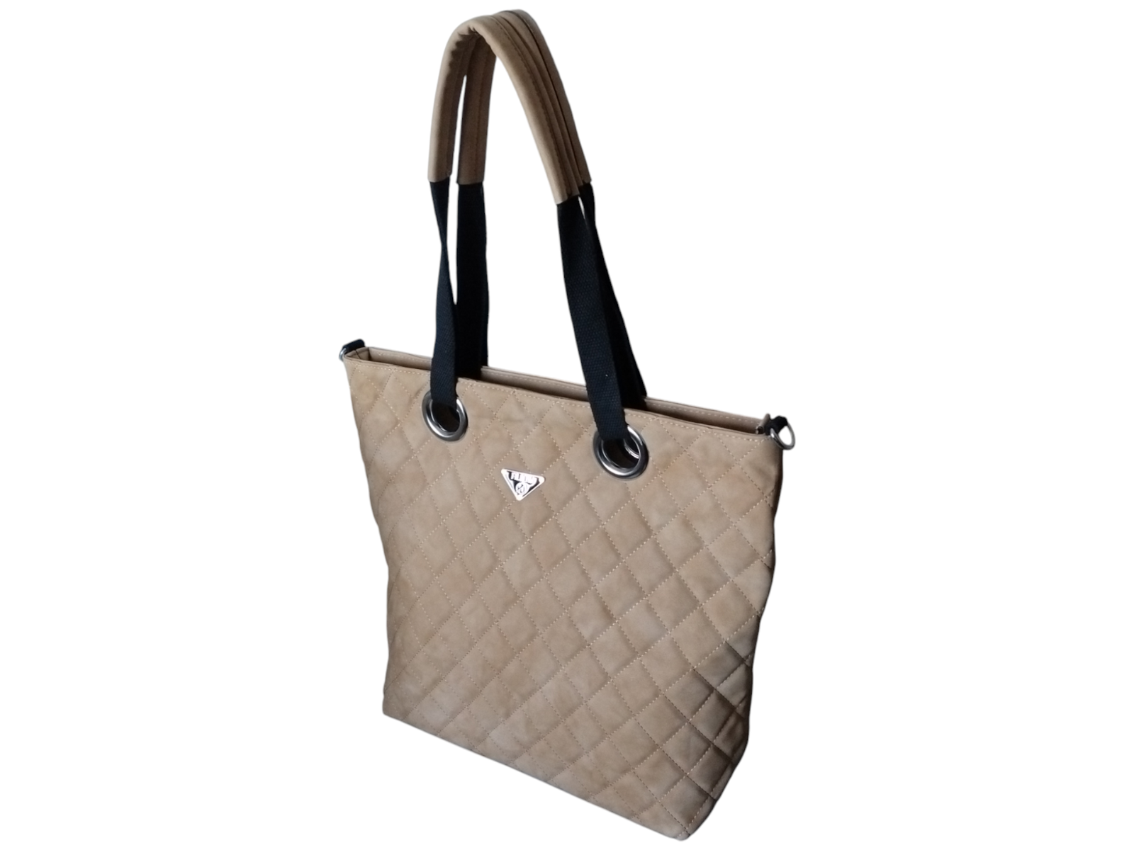 Brązowa Torebka Shopper Pikowana Damska Na Ramię Duża Pojemna A4
