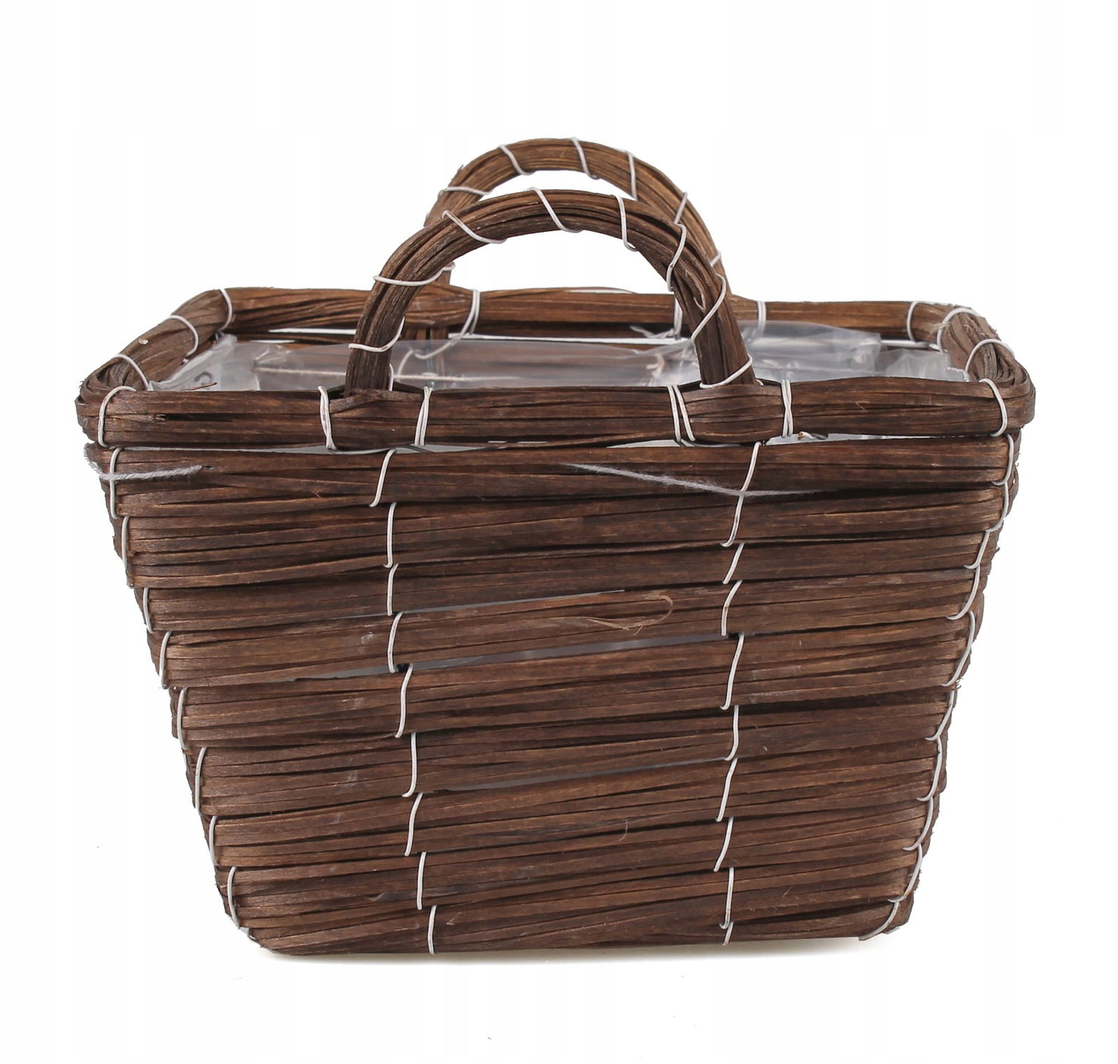 Kwadratowy koszyk z folią w okresie wiosenno - letnim wraz z odpowiednio dobranymi roślinami pięknie udekoruje balkon, werandę oraz taras, a w jesienno - zimowych miesiącach - każde miejsce w domu. Brązowy to uniwersalny i ponadczasowy kolor, który świetnie komponuje się z każdym innym. W koszyku więc ładnie wyglądają zarówno kolorowe kwiaty kwitnące (np. astry, fiołki, pelargonie i wiele innych), jak i rośliny o dekoracyjnych liściach (kocanki, ipomee, koleusy itd.).