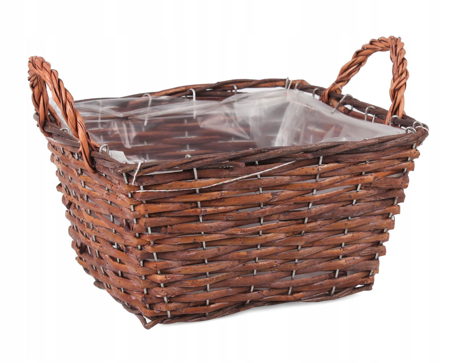 BRĄZOWY KWADRATOWY KOSZYK WIKLINOWY Z FOLIĄ 25x25x19 cm
