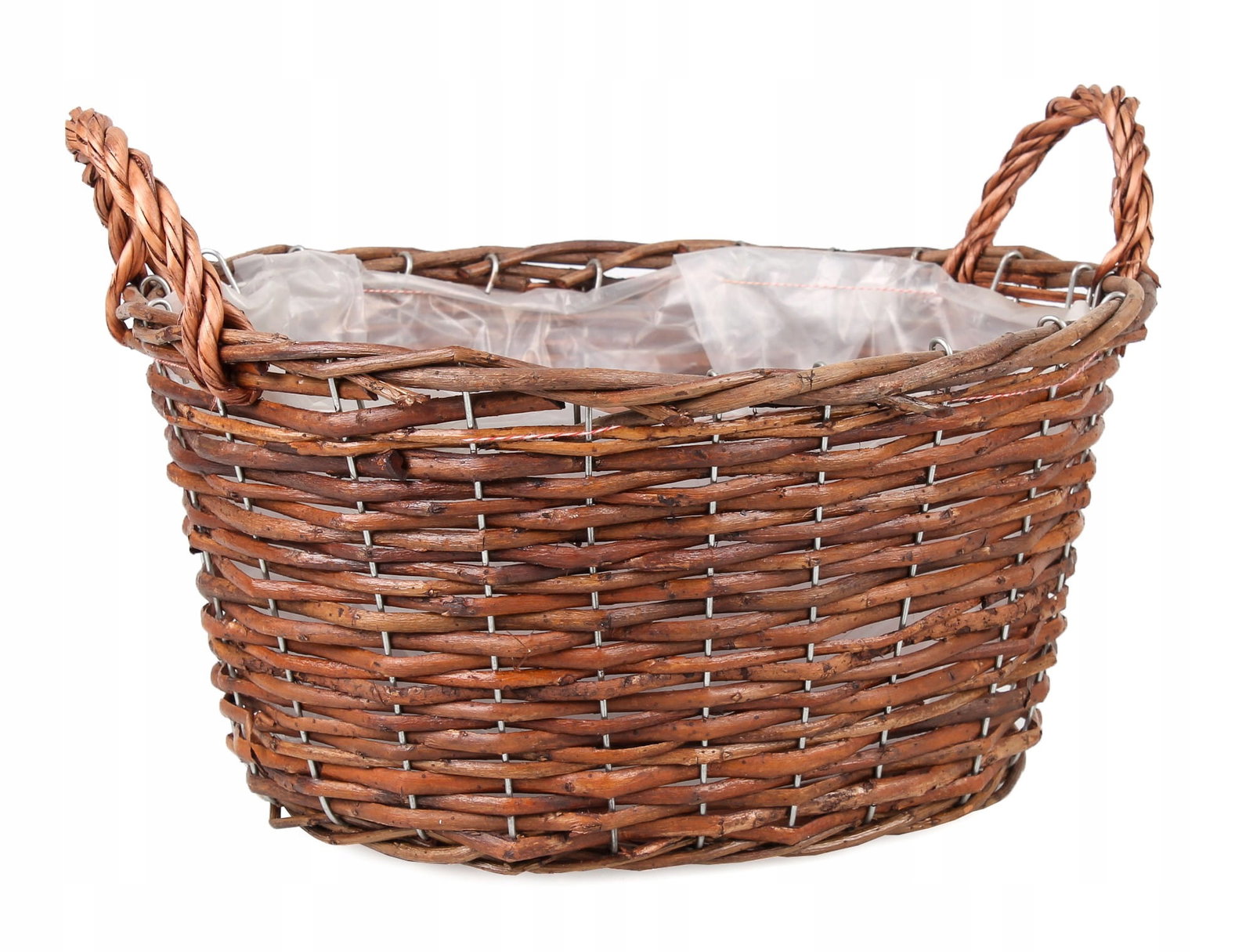 OWALNY BRĄZOWY KOSZYK OSŁONKA WIKLINOWA Z FOLIĄ NA KWIATY 35x27x16/21 cm
