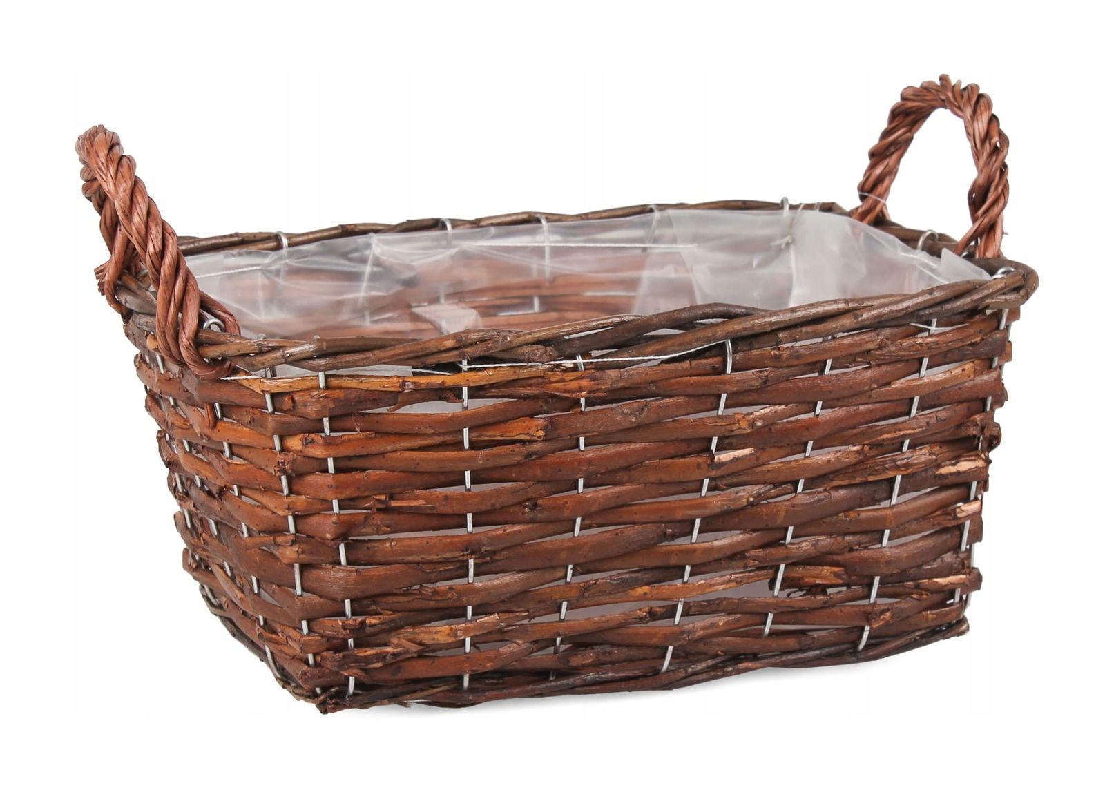 BRĄZOWY KOSZYK OSŁONKA WIKLINOWA Z FOLIĄ NA KWIATY 29x19x14/19 cm