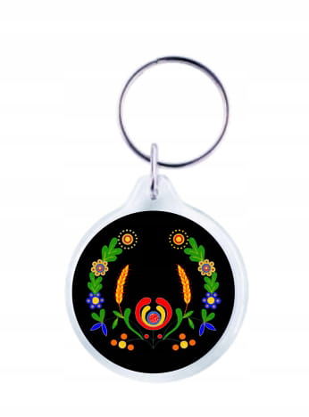 Breloczek okrągły z motywem kociewskim rak na czarnym tle. Breloczek akrylowy z metalowym kółkiem będzie pięknym dodatkiem do kluczy, plecaka czy też torebki. Brelok z motywem raka kociewskiego będzie również fajną pamiątką z Kaszub.