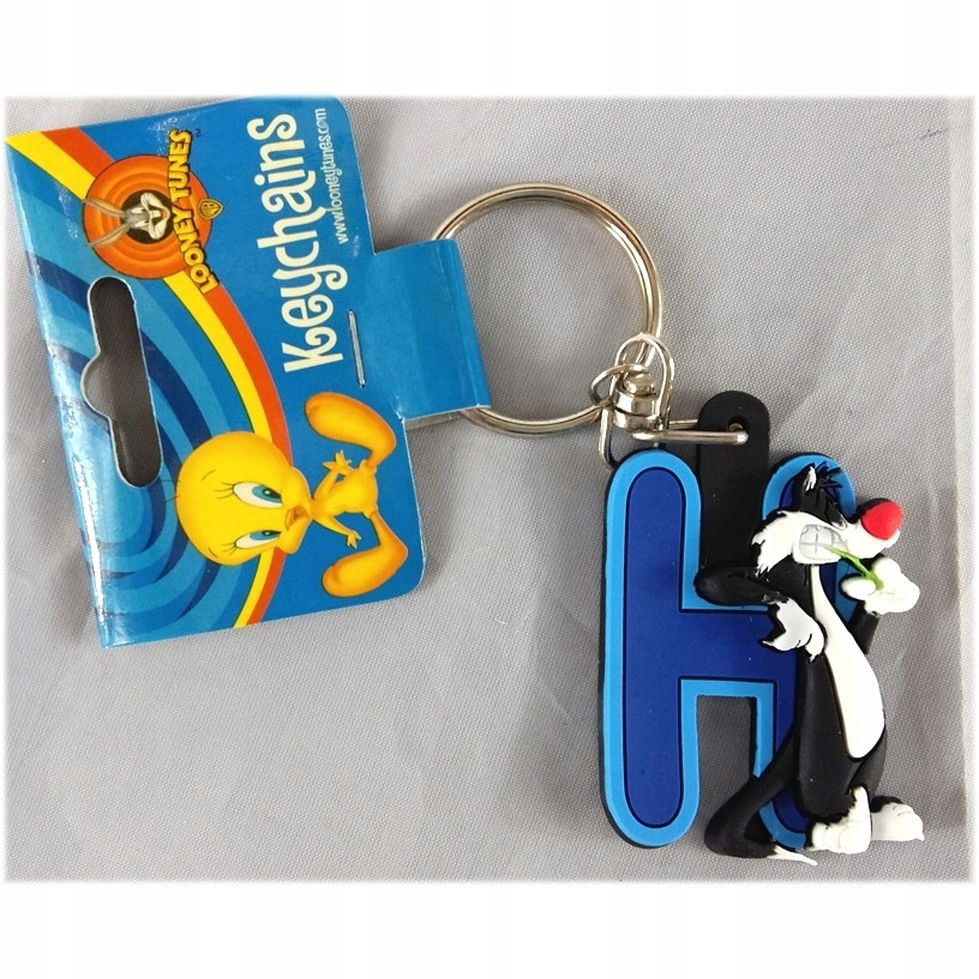 Brelok do kluczy metalowo-gumowy z literką „H”, 4 cm, Kot Sylwester.